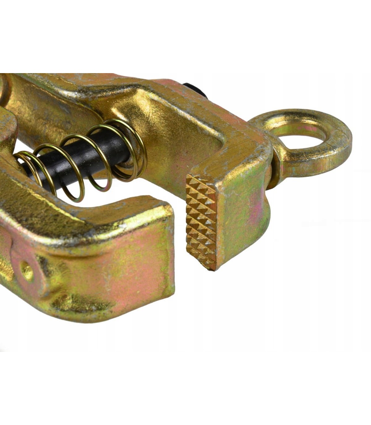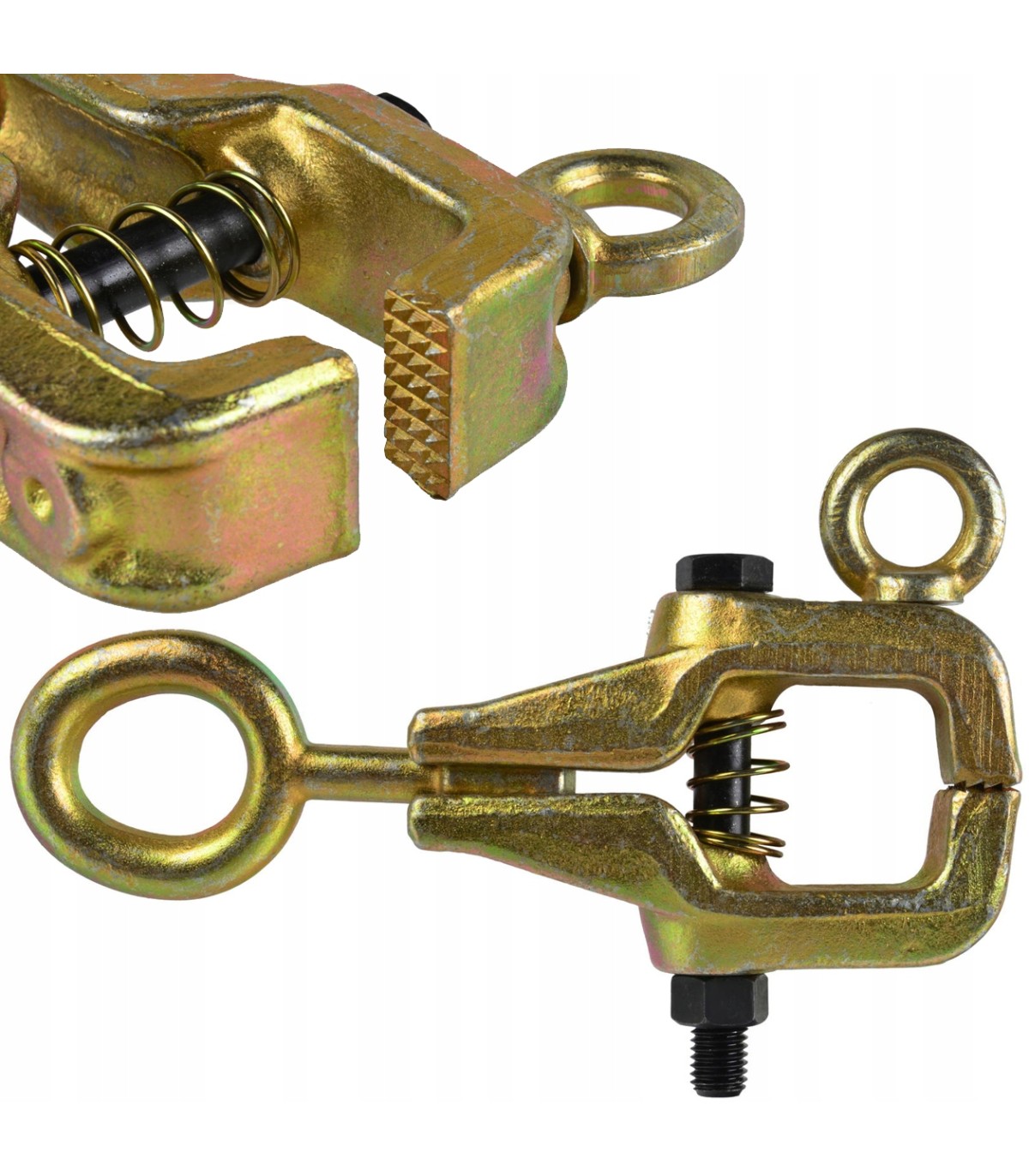 Klamra blacharska dwukierunkowa typ C. Pozwala na równoczesne naciąganie karoserii w dwóch kierunkach. Ząbkowane szczęki zwiększają pewność chwytu blachy. System samozaciskowy wykorzystuje zwiększanie siły docisku szczęk poprzez klin umieszczony w czopie ucha klamry. Dane techniczne Rodzaj: Klamra dwukierunkowa samozaciskowa Rozmiar szczęk: 16 x 35 mm Zakres pracy szczęk: 0 - 10 mm Długość całkowita: 240 mm Siła wzdłużna: 3 tony Siła poprzeczna: 2 tony Materiał wykonania: klamra - stal chromowo-molibdenowa CrMo, śruba - stal węglowa