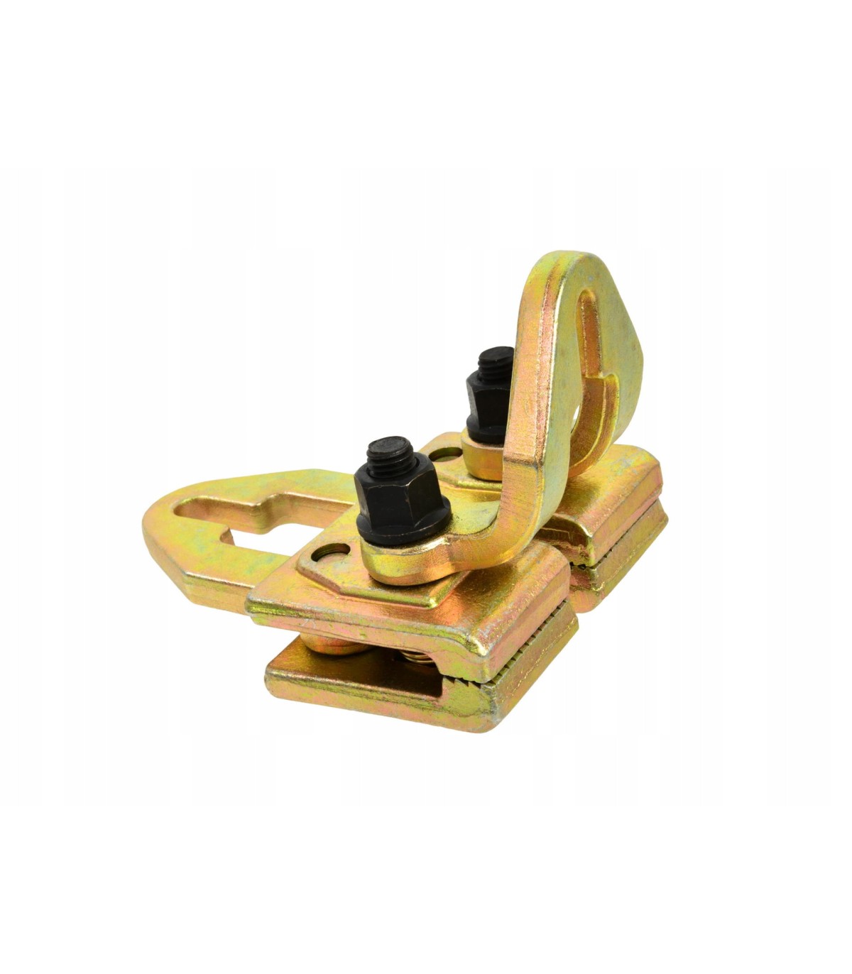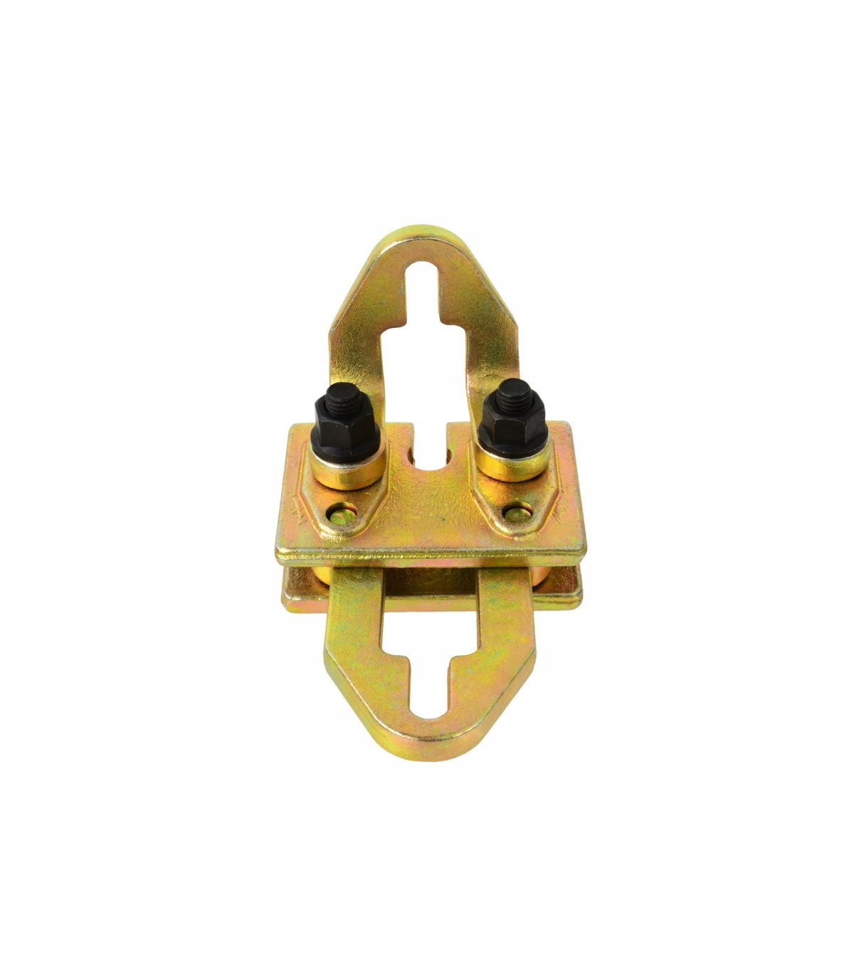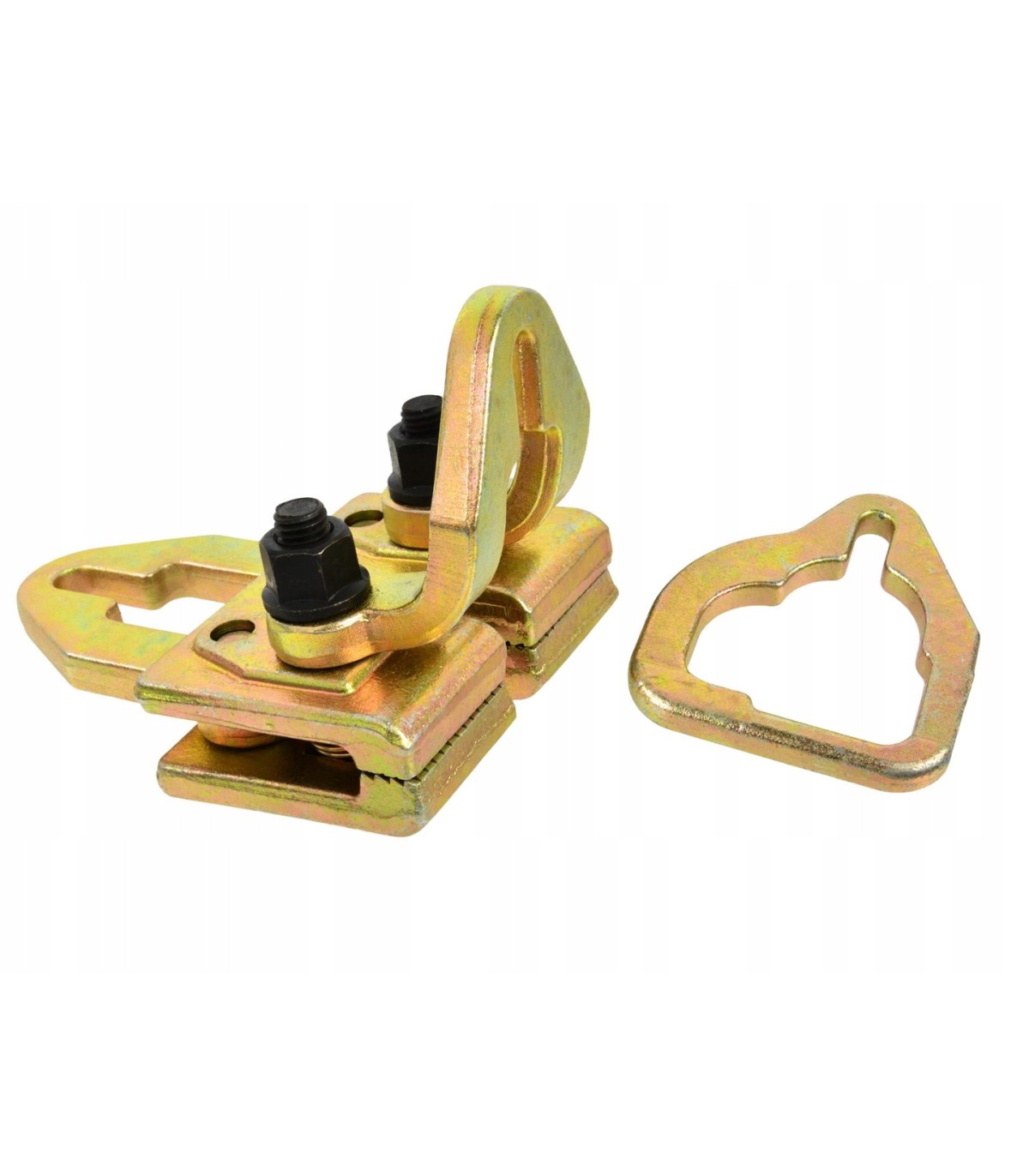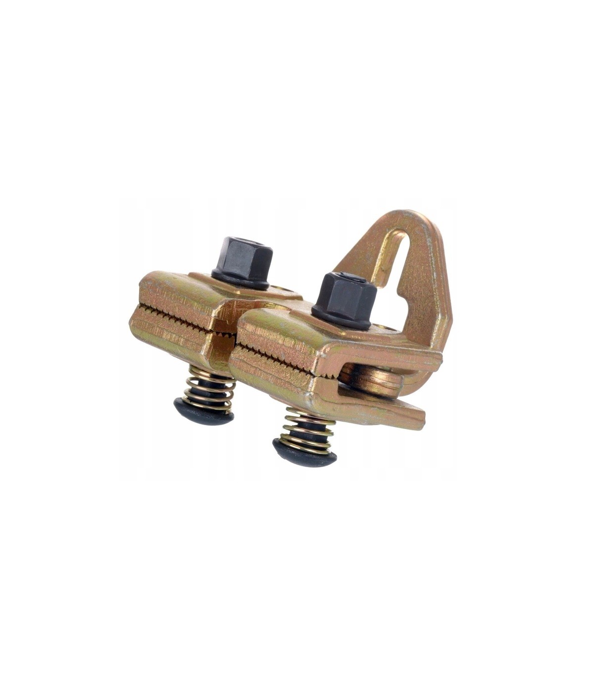 Klamra blacharska dwukierunkowa. Pozwala na równoczesne naciąganie karoserii w dwóch kierunkach. Ząbkowane szczęki zwiększają pewność chwytu blachy. System samozaciskowy wykorzystuje zwiększanie siły docisku szczęk poprzez klin umieszczony w czopie ucha klamry.