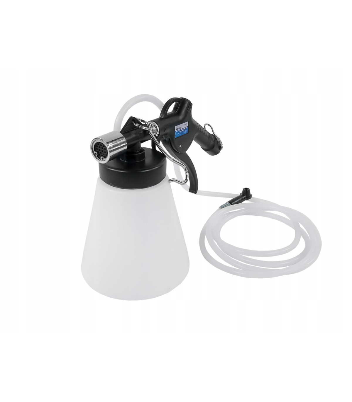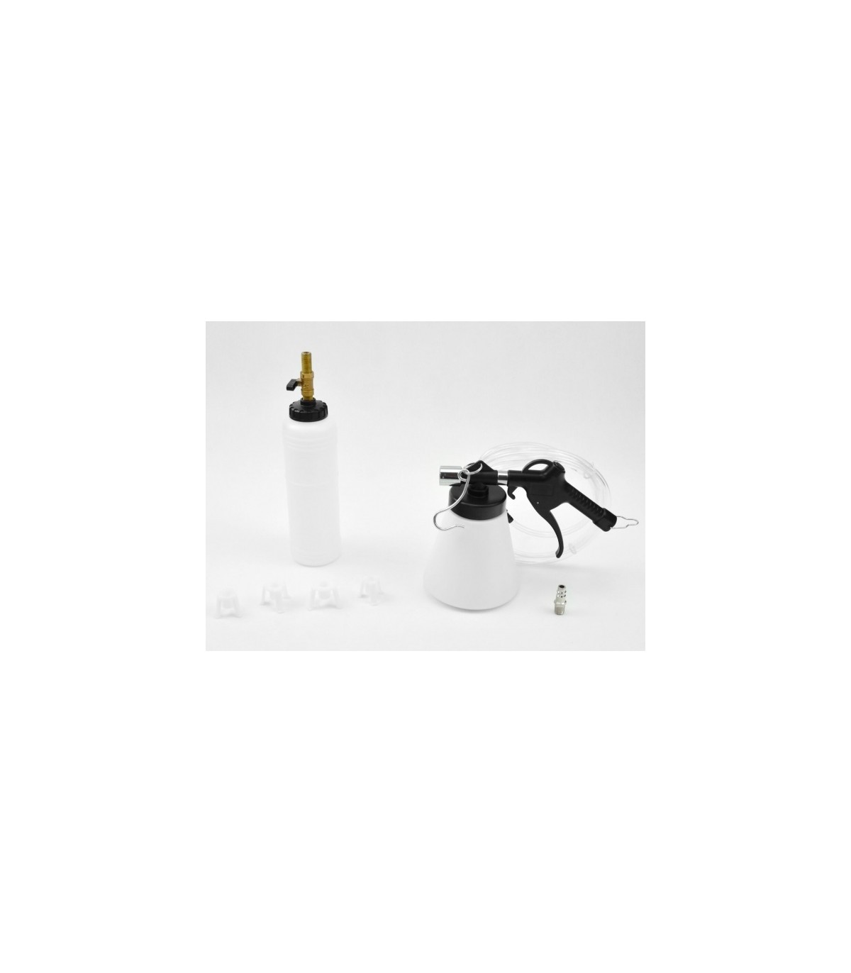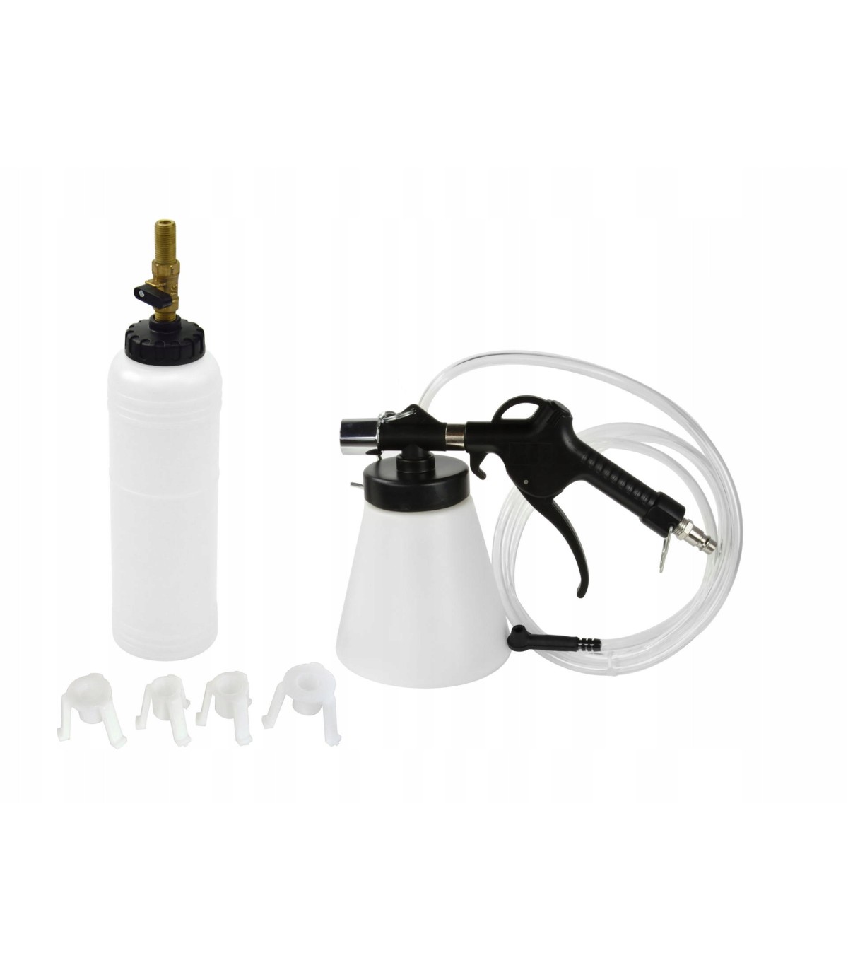 Uniwersalny zestaw do odpowietrzania układów hamulcowych marki GEKO. Urządzenie tego typu umożliwia jednoosobowe wykonanie napełnienia oraz odpowietrzania układu hamulcowego przy pomocy ciśnienia kompresora.