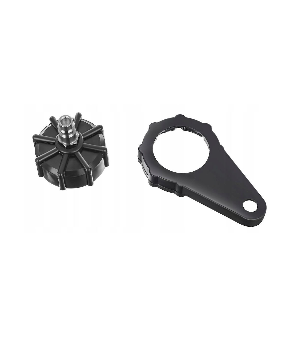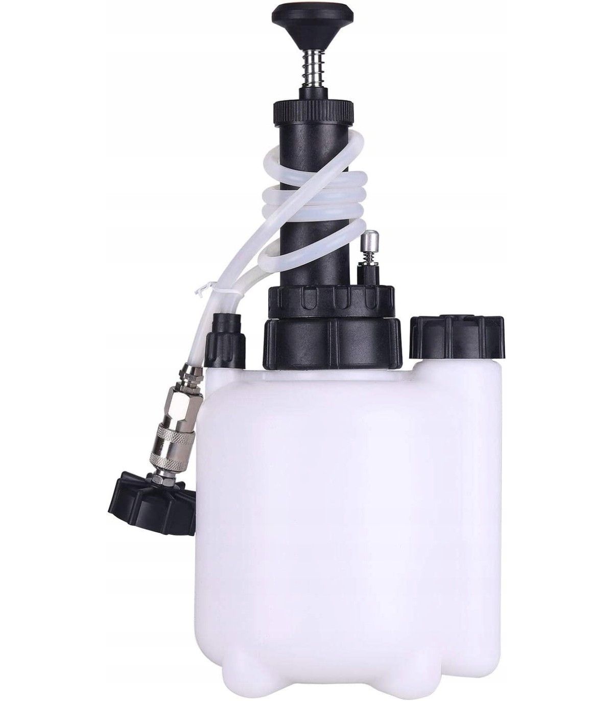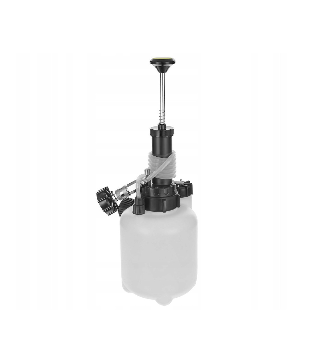 Zestaw pozwala na jednoosobowe wykonanie napełnienia oraz odpowietrzania układu hamulcowego przy pomocy ciśnienia z instalacji pneumatycznej (kompresora).