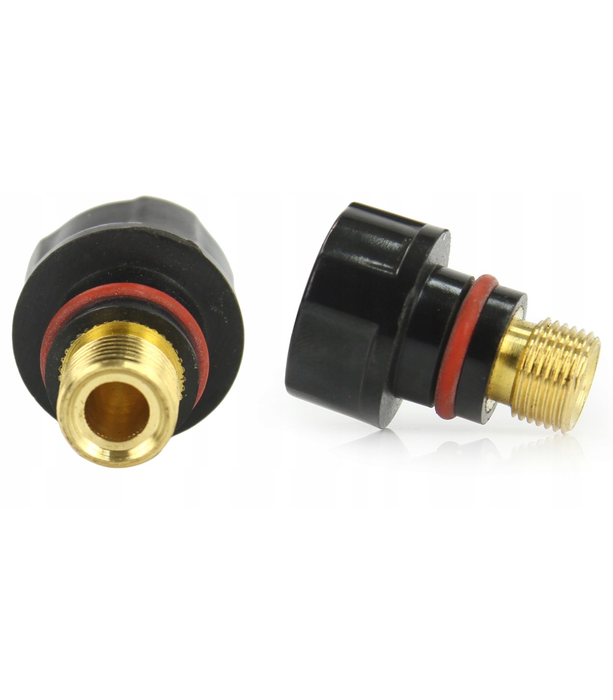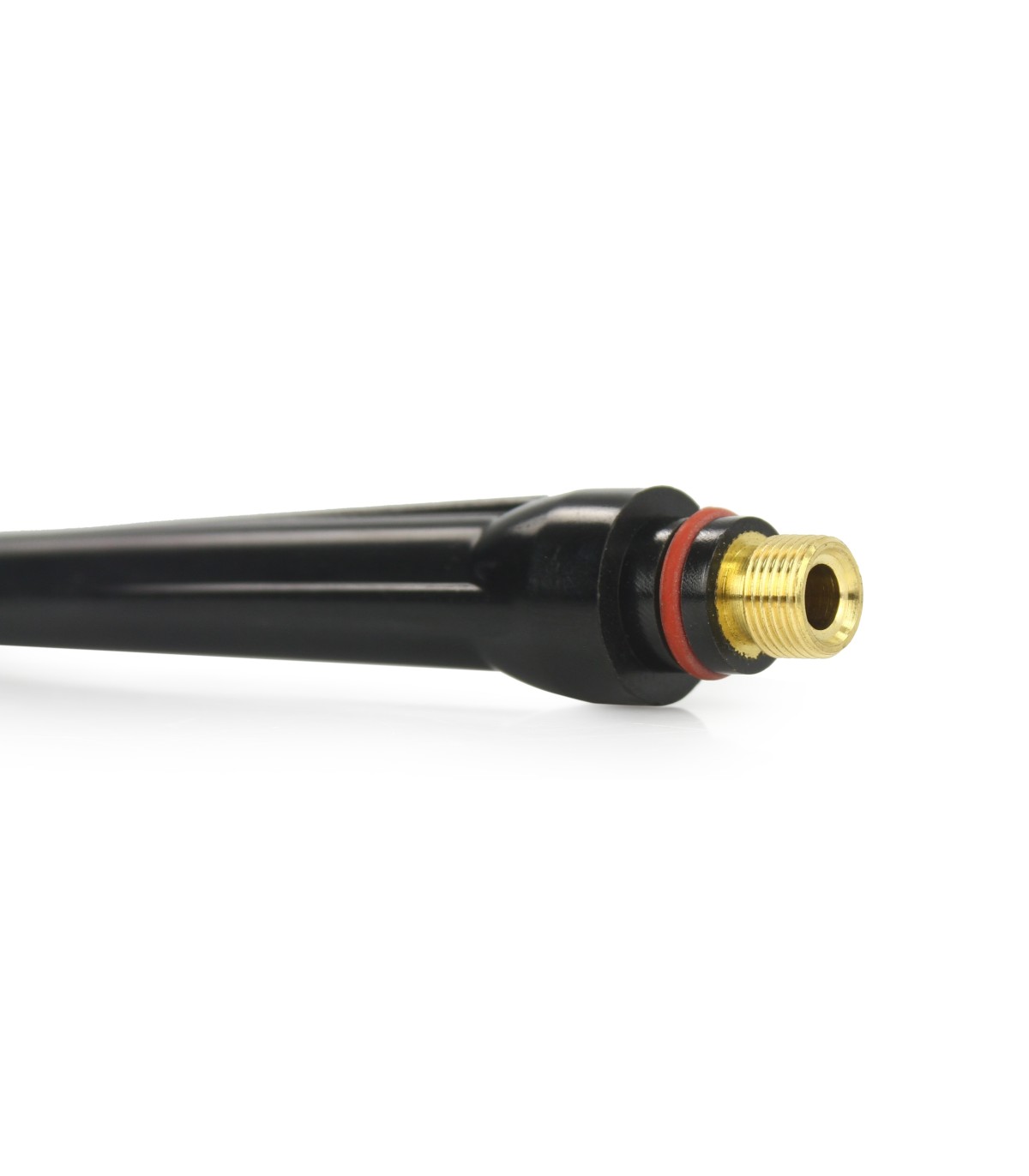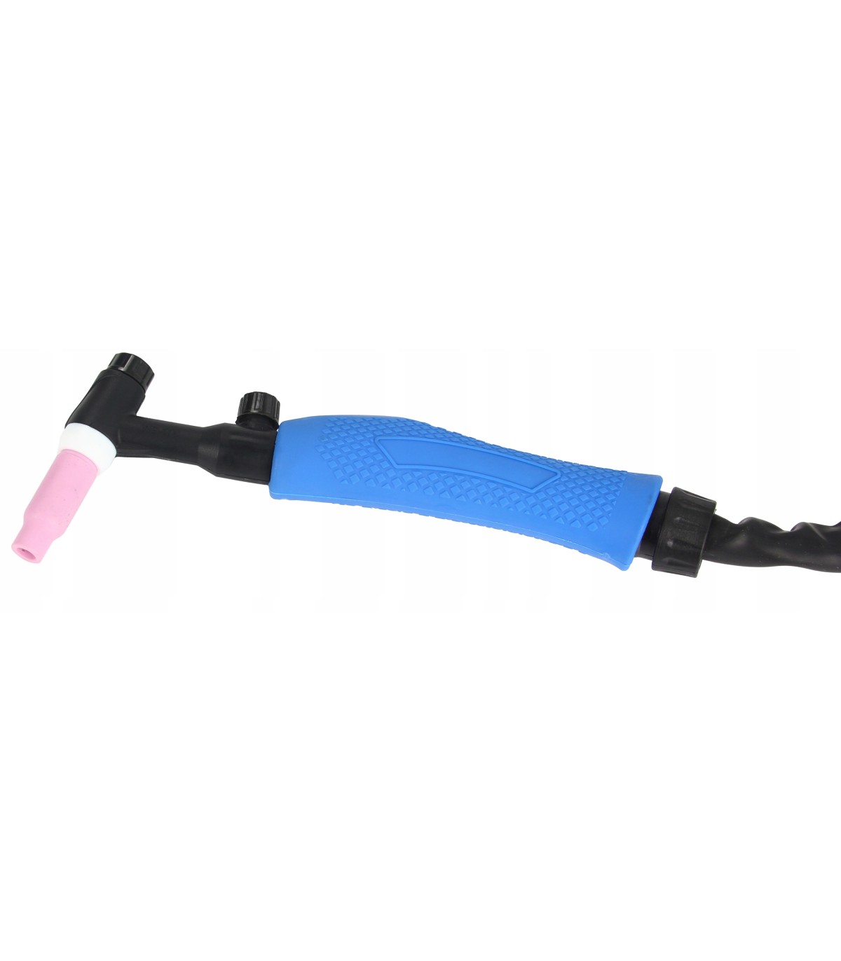 Uchwyt spawalniczy TIG z przyłączem 10-25 - ok. 4m przewód gazowy długości ok. 6 m umożliwiający swobodne podpięcie butli z dala od spawarki co ma istotne znaczenie dot. bezpieczeństwa. Nakrętka przewodu gazowego do reduktora to 19mm