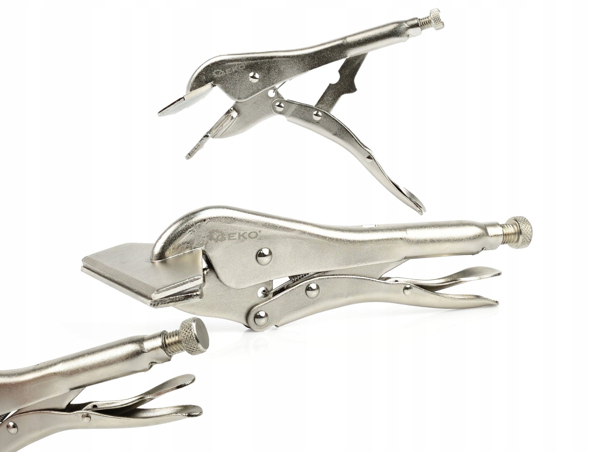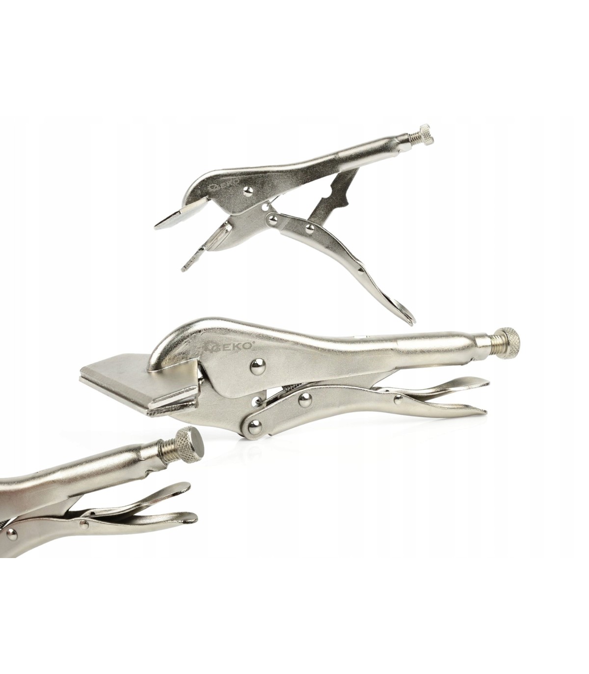 Posiadają regulację śrubową rozwarcia umożliwiające dostosowanie rozstaw szczęk w zależności od grubości chwytanego materiału.