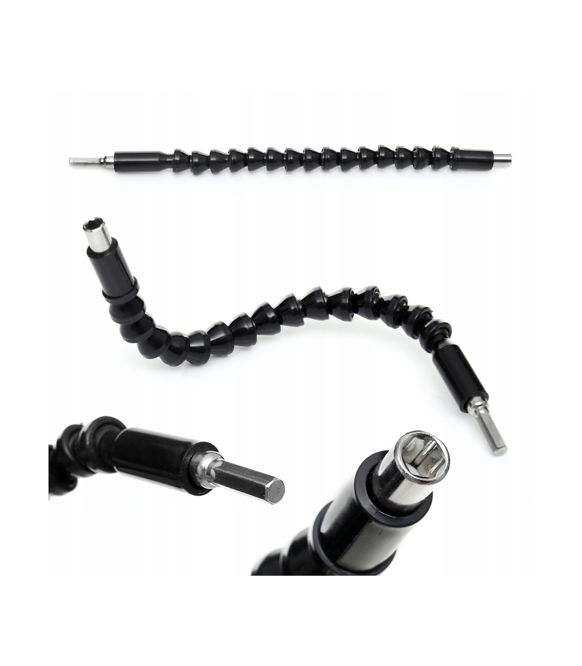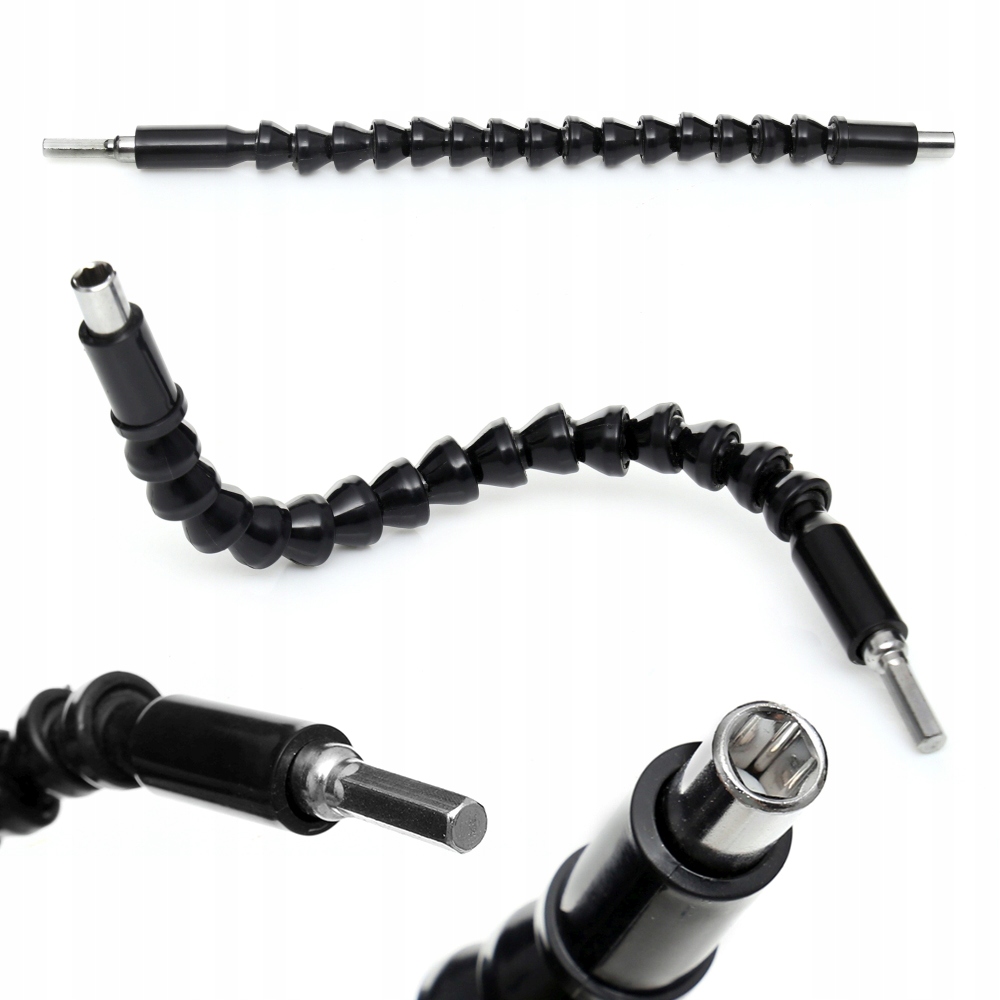 Elastyczna przedłużka do bitów o długości 30 cm, idealna do pracy w trudno dostępnych miejscach, gdzie standardowy bit nie sięga. Pasuje do większości wkrętarek i wkrętarek udarowych z uchwytem na bity standardu 1/4".