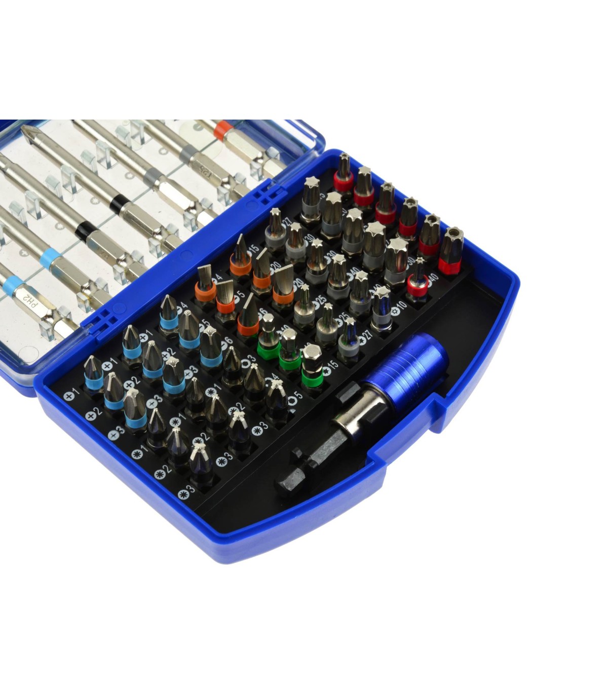 ✅ Kompletny zestaw bitów ze stali chromowo-wanadowej (CrV) przeznaczony do prac montażowych, warsztatowych i serwisowych. W zestawie znajduje się uchwyt magnetyczny 65 mm oraz szeroki wybór bitów w najpopularniejszych profilach i rozmiarach, w tym bity Torx Tamper do śrub zabezpieczonych.