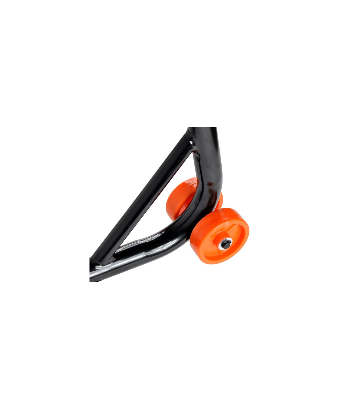 Do produkcji wykorzystano stalową rurę o średnicy 32 mm malowaną proszkowo. Dodatkowo wzmacniana konstrukcja stojaka gwarantuje stabilne i bezpieczne podnoszenie motocykla.