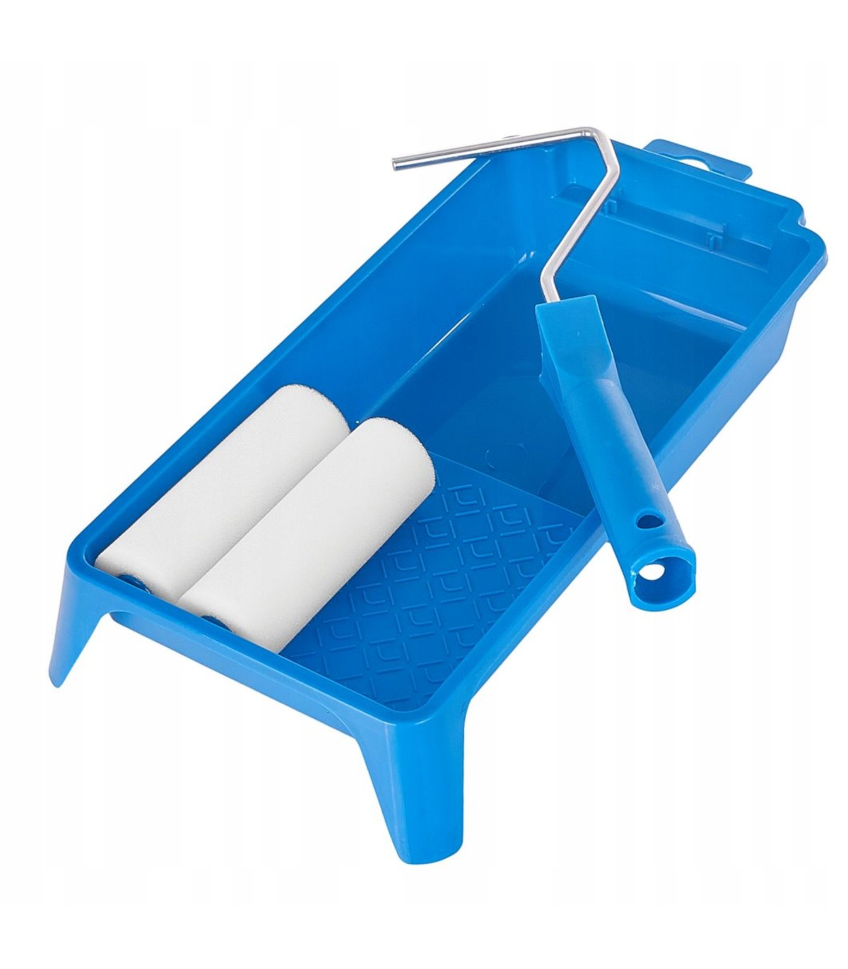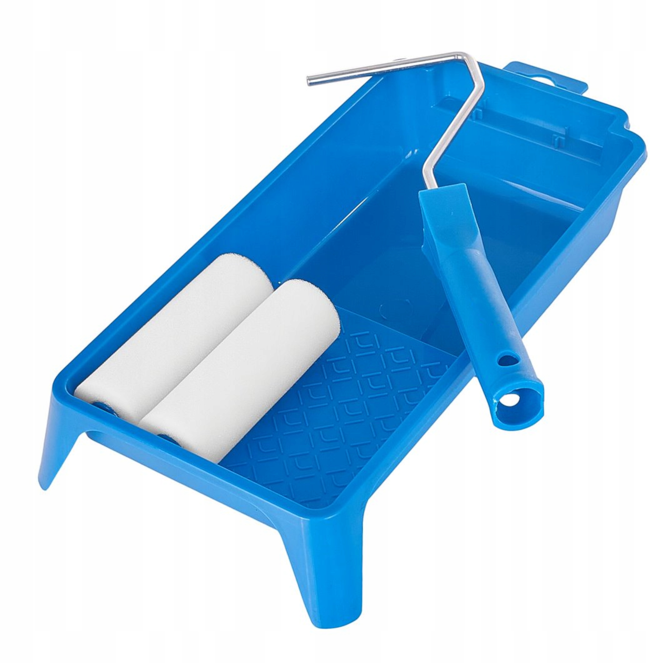 Kompletny zestaw, który idealnie sprawdzi się przy malowaniu gładkich powierzchni metalowych i drewnianych. Zawiera dwa wałki z wysokiej jakości gąbki, solidny uchwyt oraz kuwetę malarską.