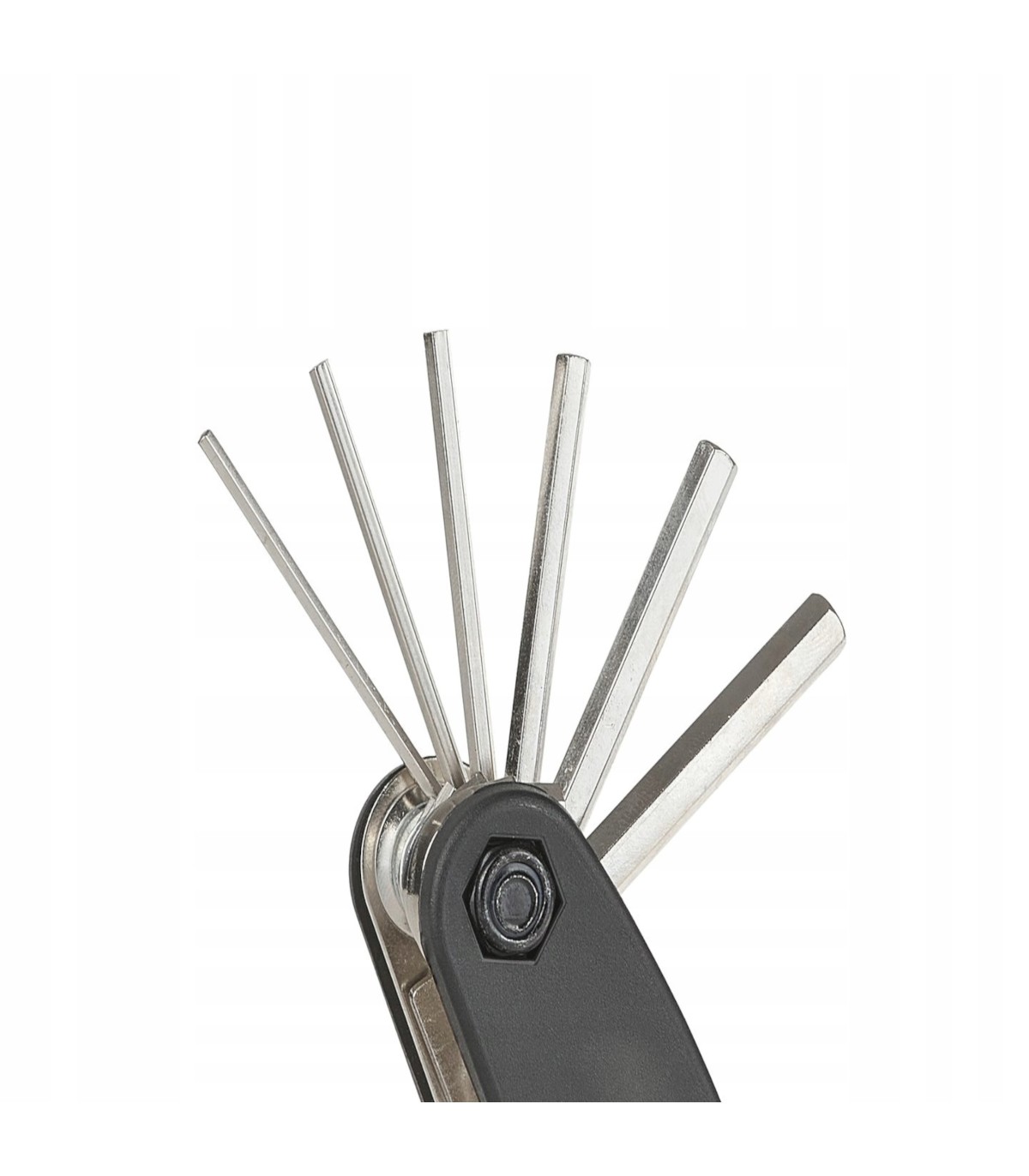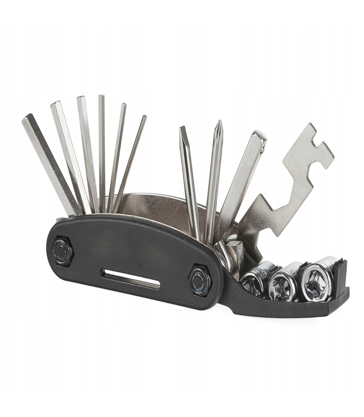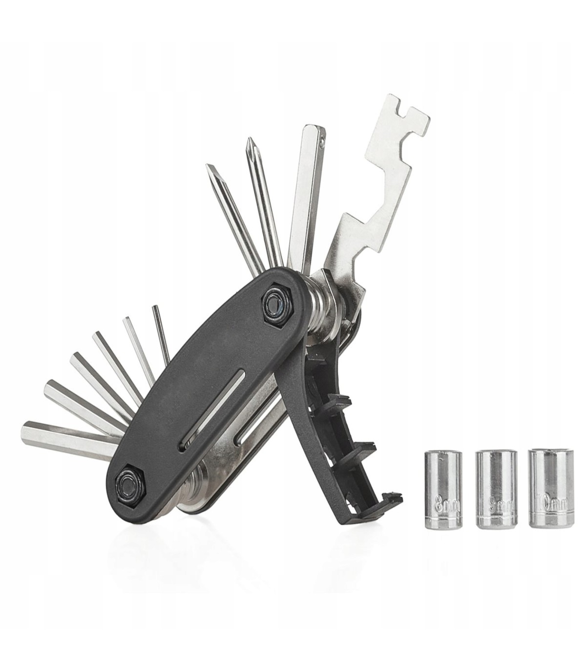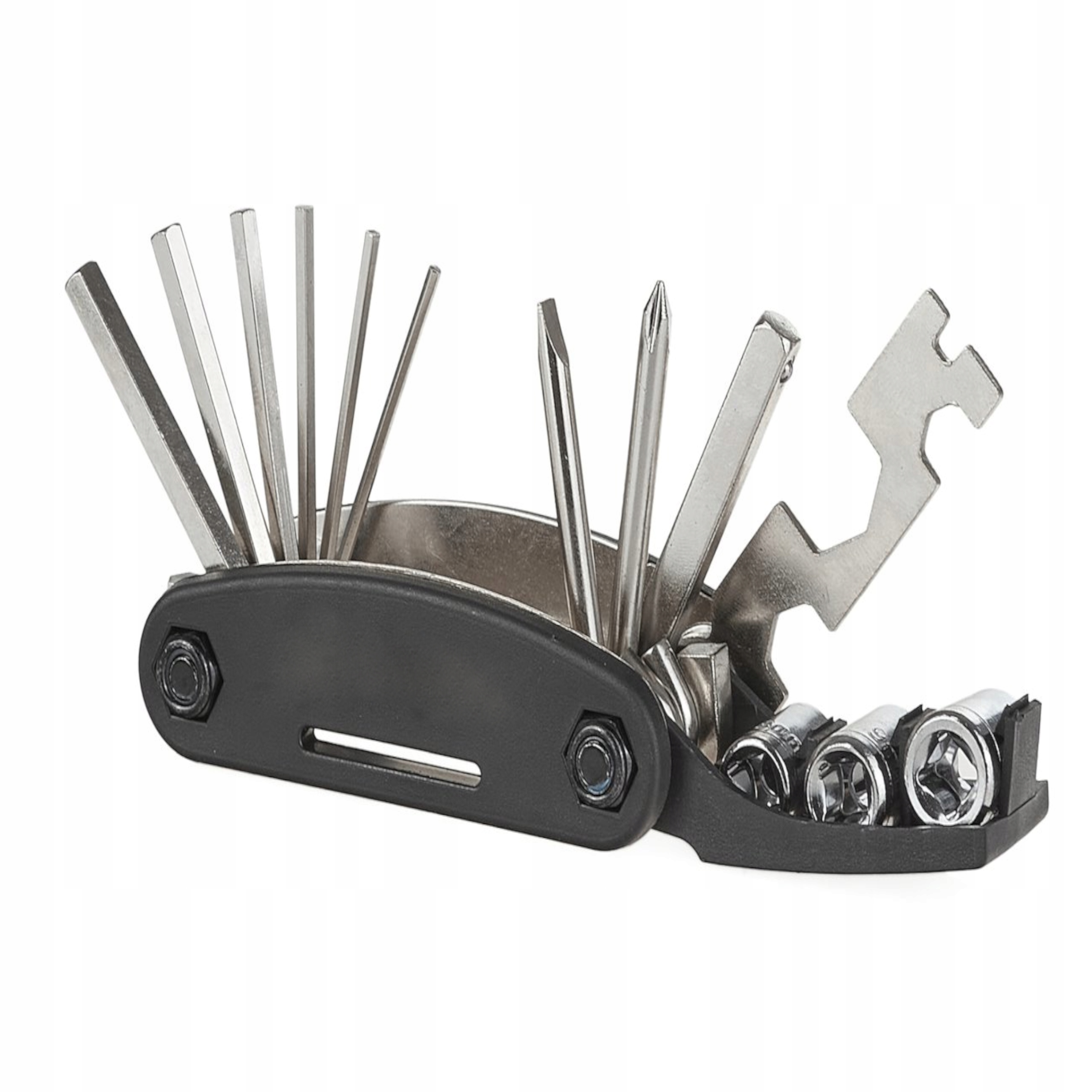 ⭐ Wzmocniony zestaw kluczy rowerowych 16w1 to funkcjonalny multitool stworzony z myślą o rowerzystach, którzy cenią sobie jakość, trwałość i wszechstronność. Niklowane wykończenie zwiększa odporność na korozję i zużycie, a przemyślany układ narzędzi w formie scyzoryka zapewnia wygodę i oszczędność miejsca.