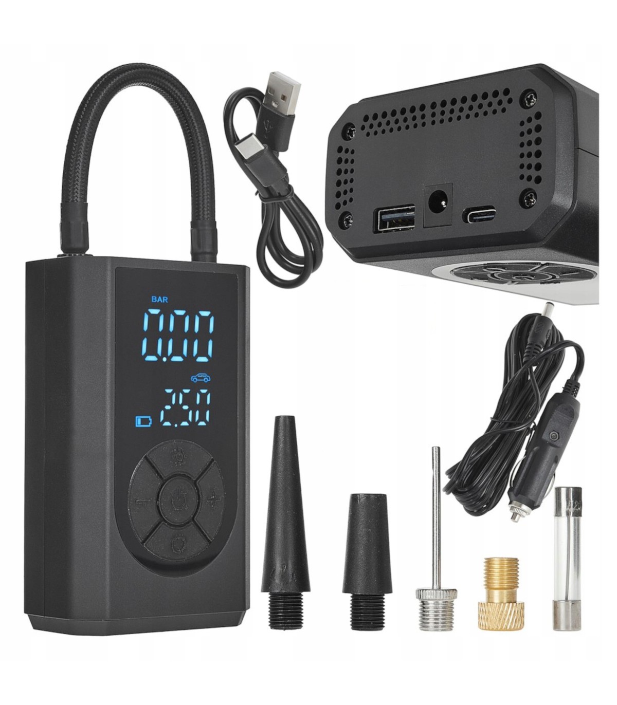 ⭐ Nowoczesny mini kompresor rowerowy i samochodowy to niezastąpione urządzenie dla każdego kierowcy, rowerzysty i podróżnika. Łączy w sobie funkcję kompresora, powerbanka oraz latarki LED, oferując pełen pakiet praktycznych możliwości w kompaktowej obudowie.