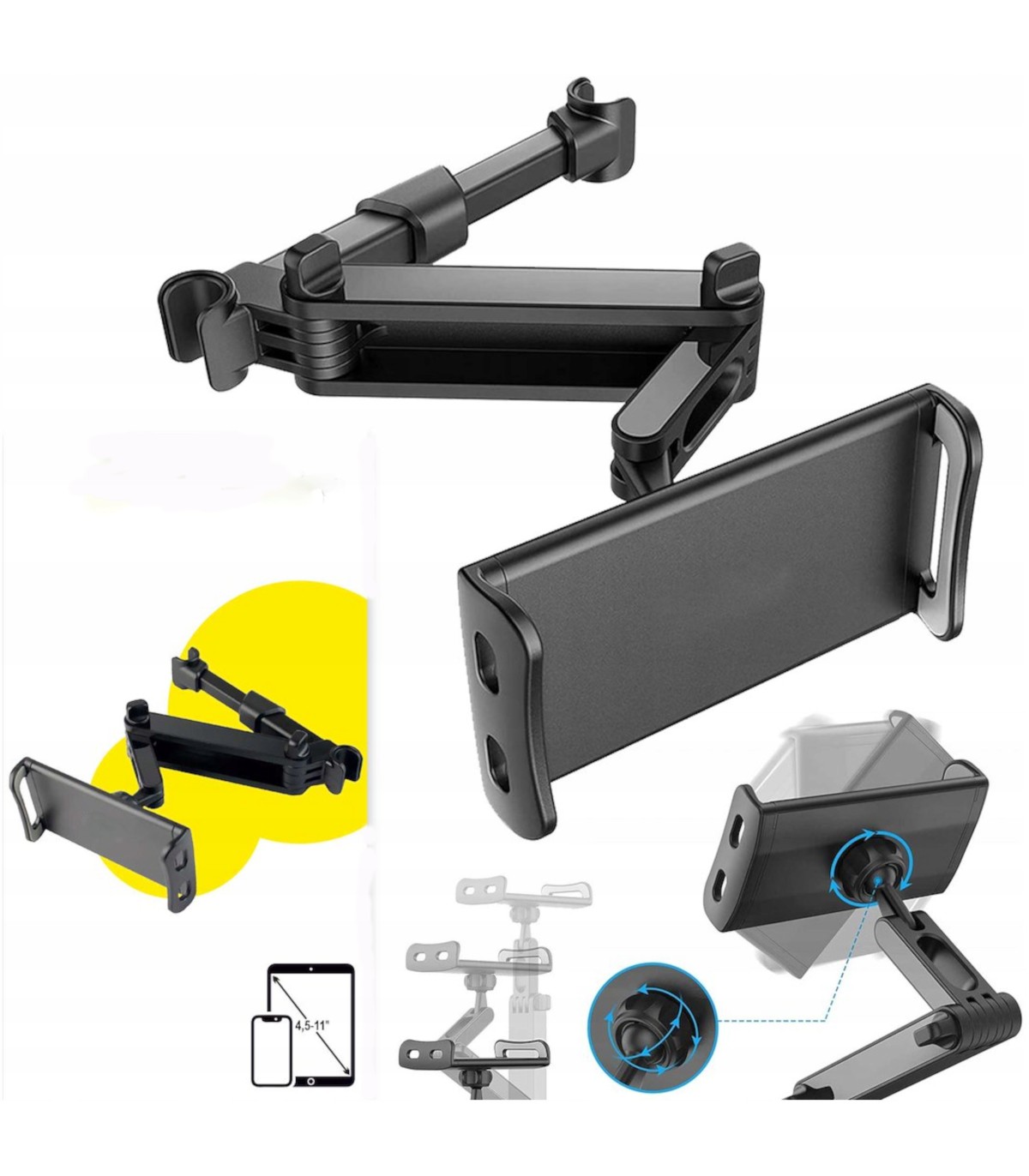 UCHWYT DO TABLETU TELEFONU NA ZAGŁÓWEK 4,5"-11" SKŁADANY OBROTOWA GŁOWICA