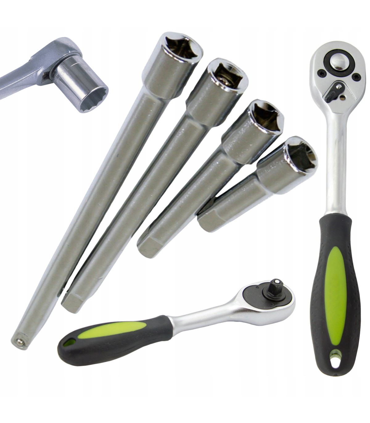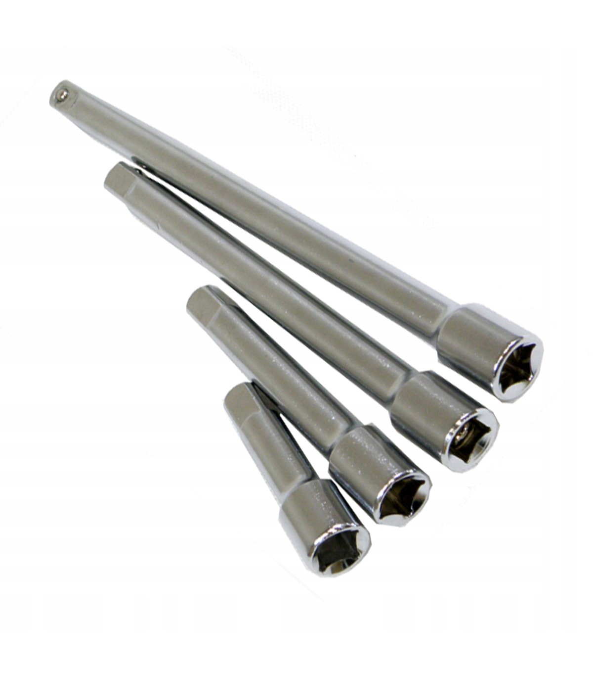 Zestaw 4 stalowych przedłużek 1/2", idealnych do zastosowania z nasadkami grzechotkowymi. Ten praktyczny zestaw umożliwia łatwy dostęp do trudno dostępnych miejsc, zapewniając wszechstronność i wygodę w różnych pracach mechanicznych i warsztatowych.