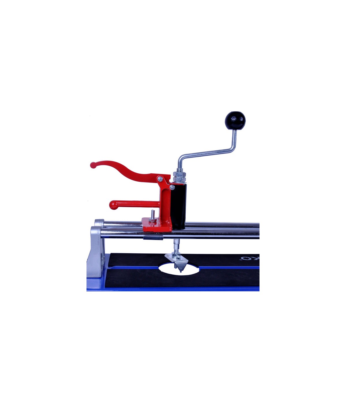 Na dwóch równoległych rurowych prowadnicach umieszczony jest zespół tnący, dodatkowo istnieje możliwość zamocowania specjalnego wykrojnika otworów od fi 30 do fi 86mm.