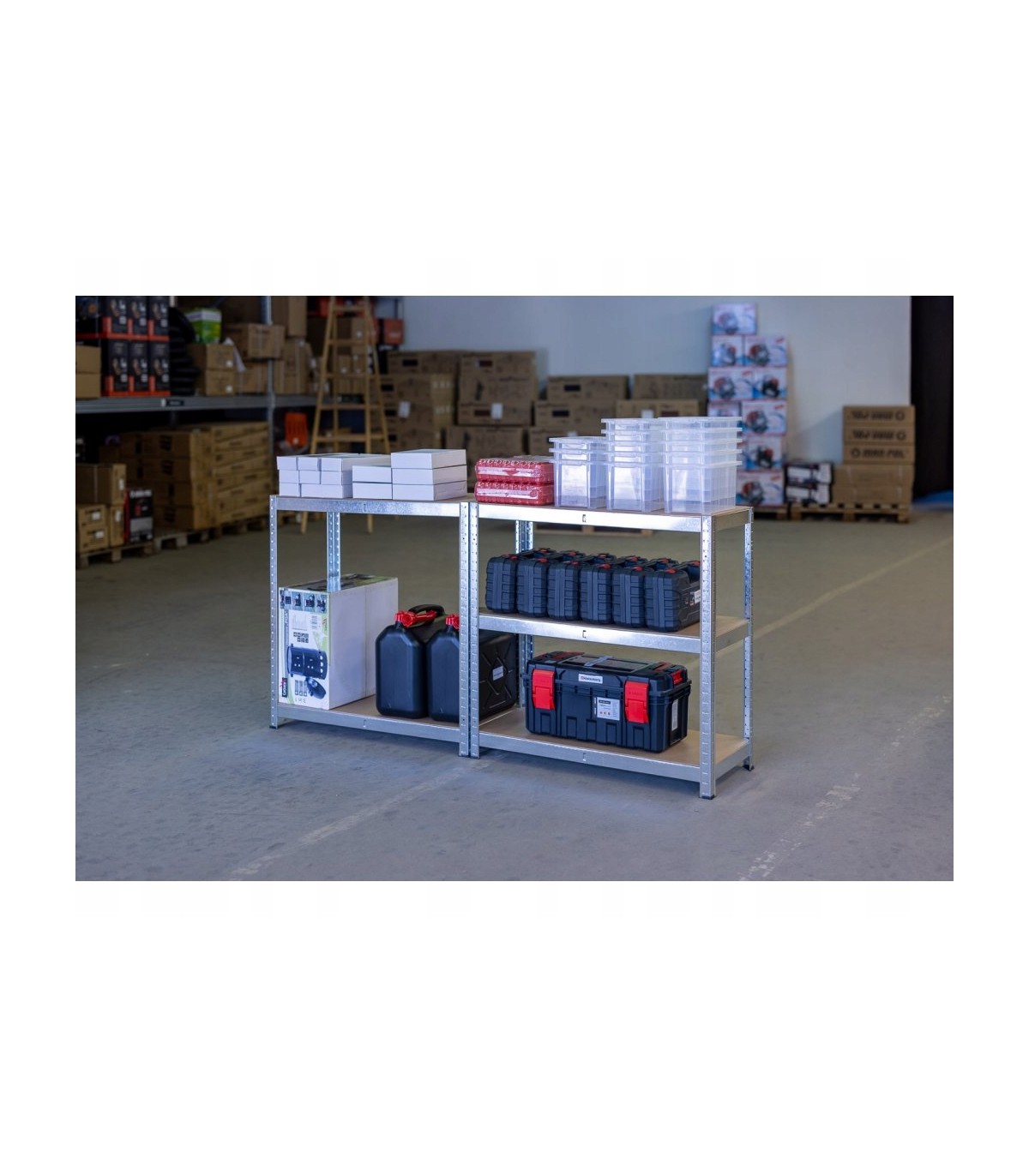 Potrzeba miejsca do przechowywania często rośnie. Dlatego możliwe jest ustawienie wielu regałów obok siebie i po prostu ich połączenie (śruby nie są dołączone). Tworzy to stabilny, kompletny zestaw, który sprosta nawet ty najtrudniejszym wyzwaniom magazynowym - czy to w domu, garażu, magazynie czy biurze.