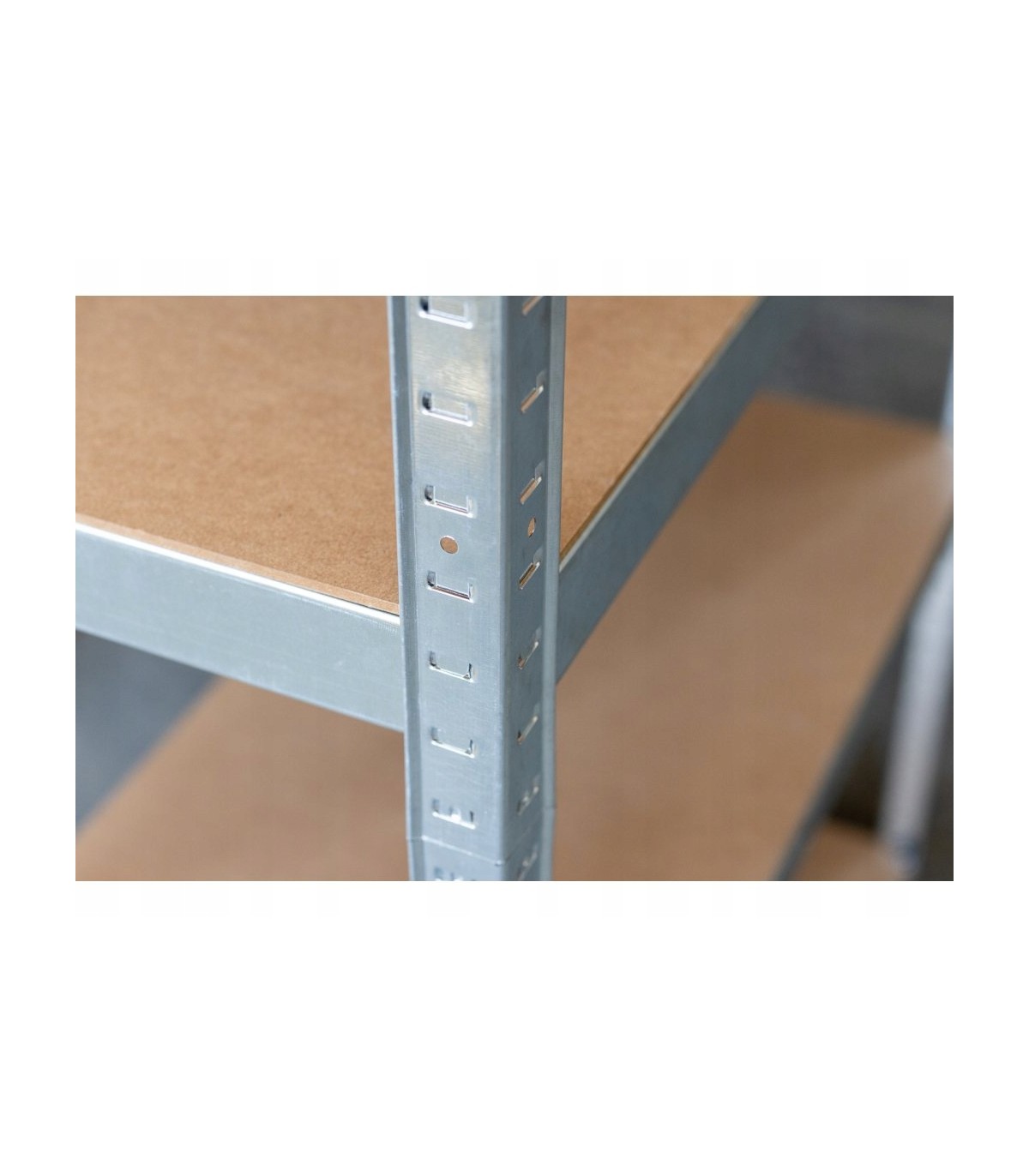 Gumowe nóżki chronią podłogę przed zarysowaniami w warsztatach domowych, garażach, a także w pomieszczeniach biurowych lub magazynach. Półki wykonane są ze średniej gęstości płyty pilśniowej (MDF) o grubości 4 mm, co zapewnia stabilną powierzchnię bez odprysków lub ostrych krawędzi.