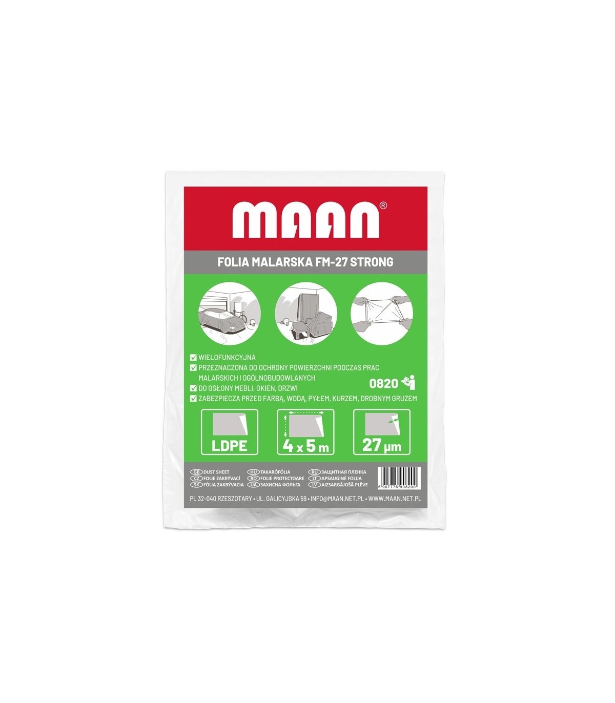 ✔️ 1 × Folia malarska FM-27 STRONG 4 × 5 m, HDPE, 27 µ