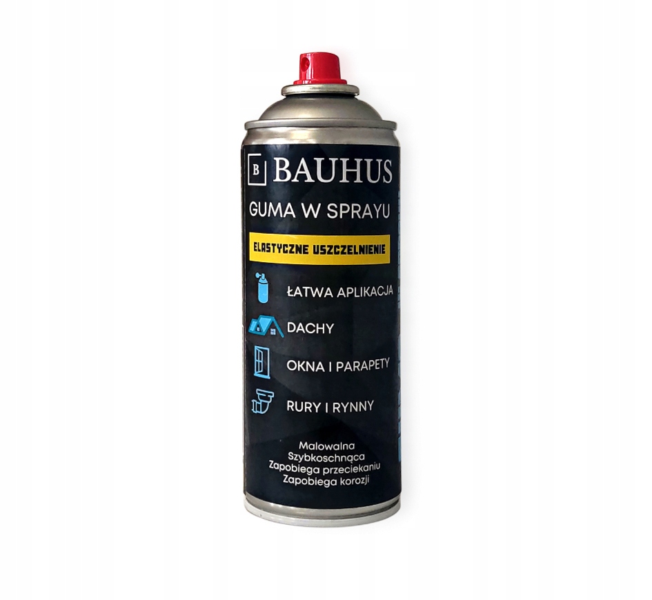 Guma w sprayu Bauhus to szybki i prosty sposób na naprawę pęknięć oraz przecieków, które mogą pojawić się na różnych powierzchniach budowlanych.
