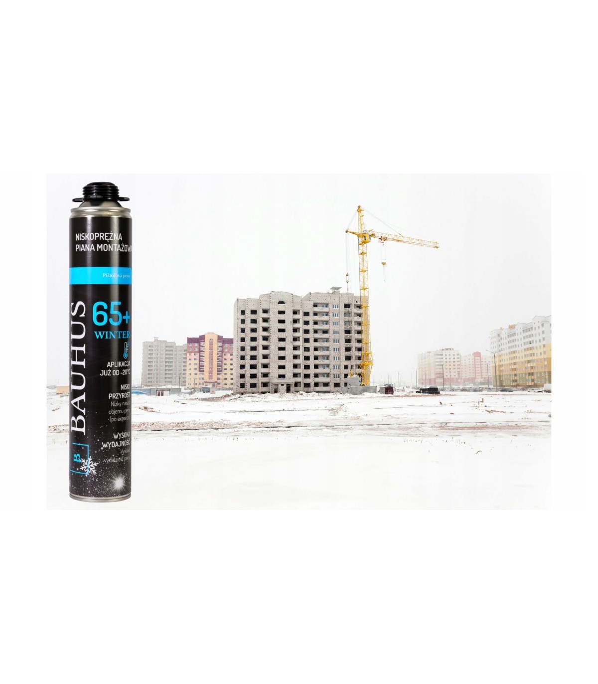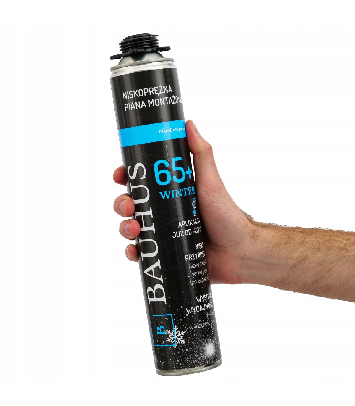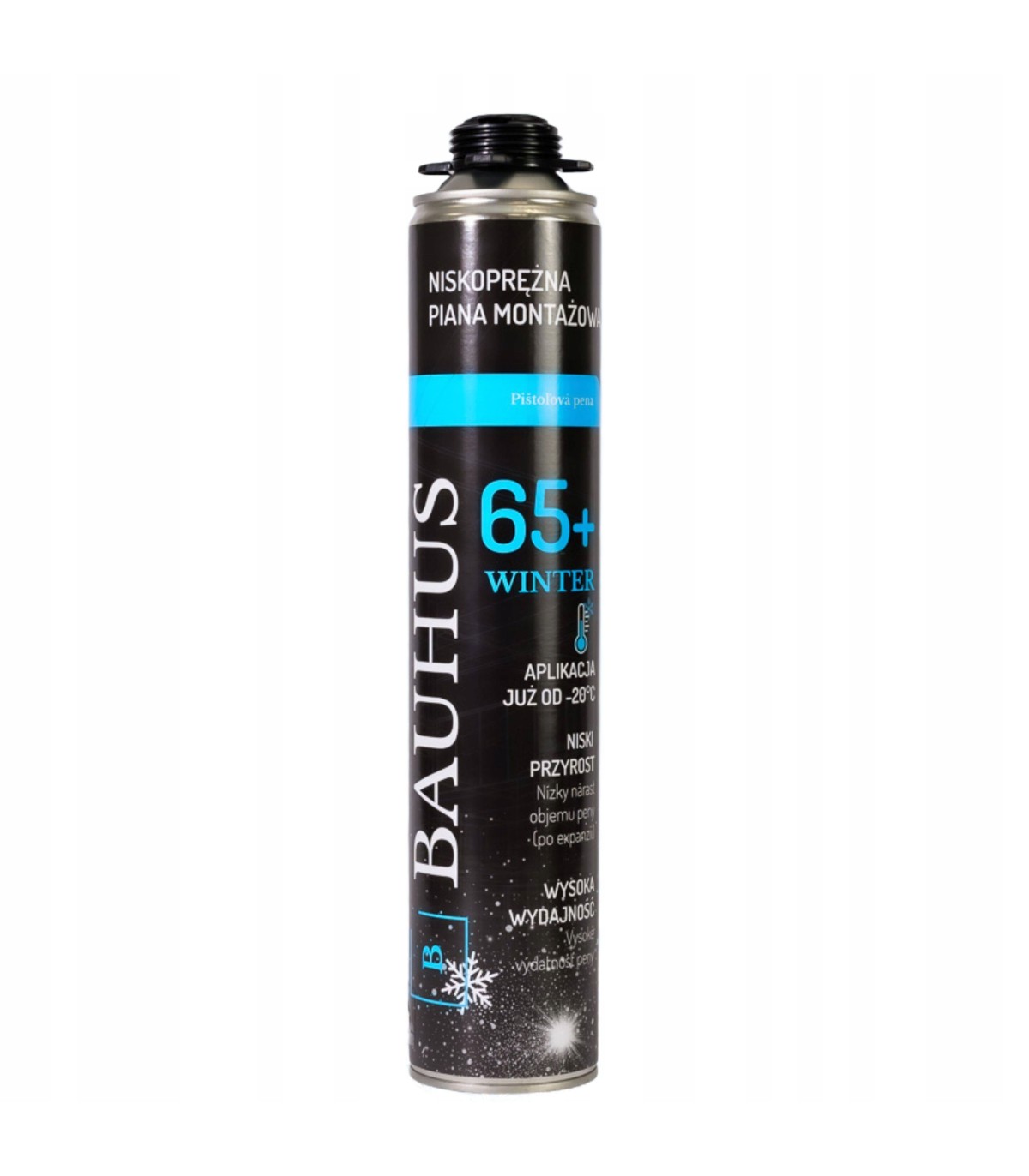 Piana 65+ Bauhus w wersji zimowej to niskoprężna piana pistoletowa o krótkim czasie utwardzania, charakteryzująca się dużą wydajnością i wysoką izolacyjnością termiczną nawet w trudnych, zimowych warunkach.