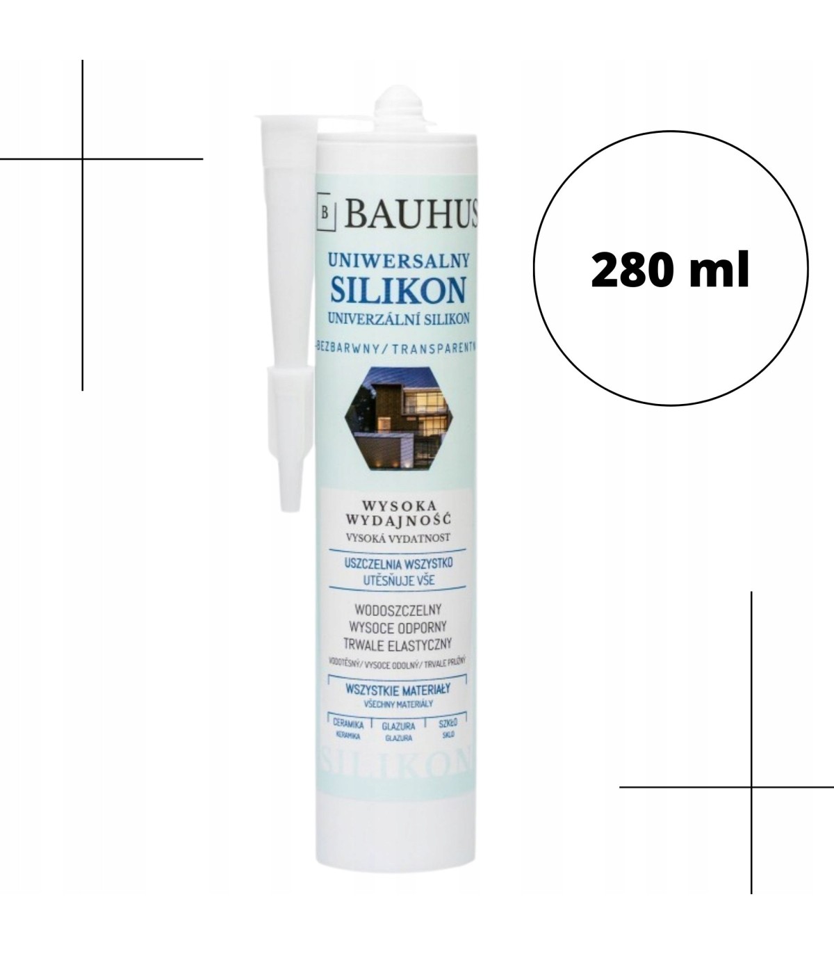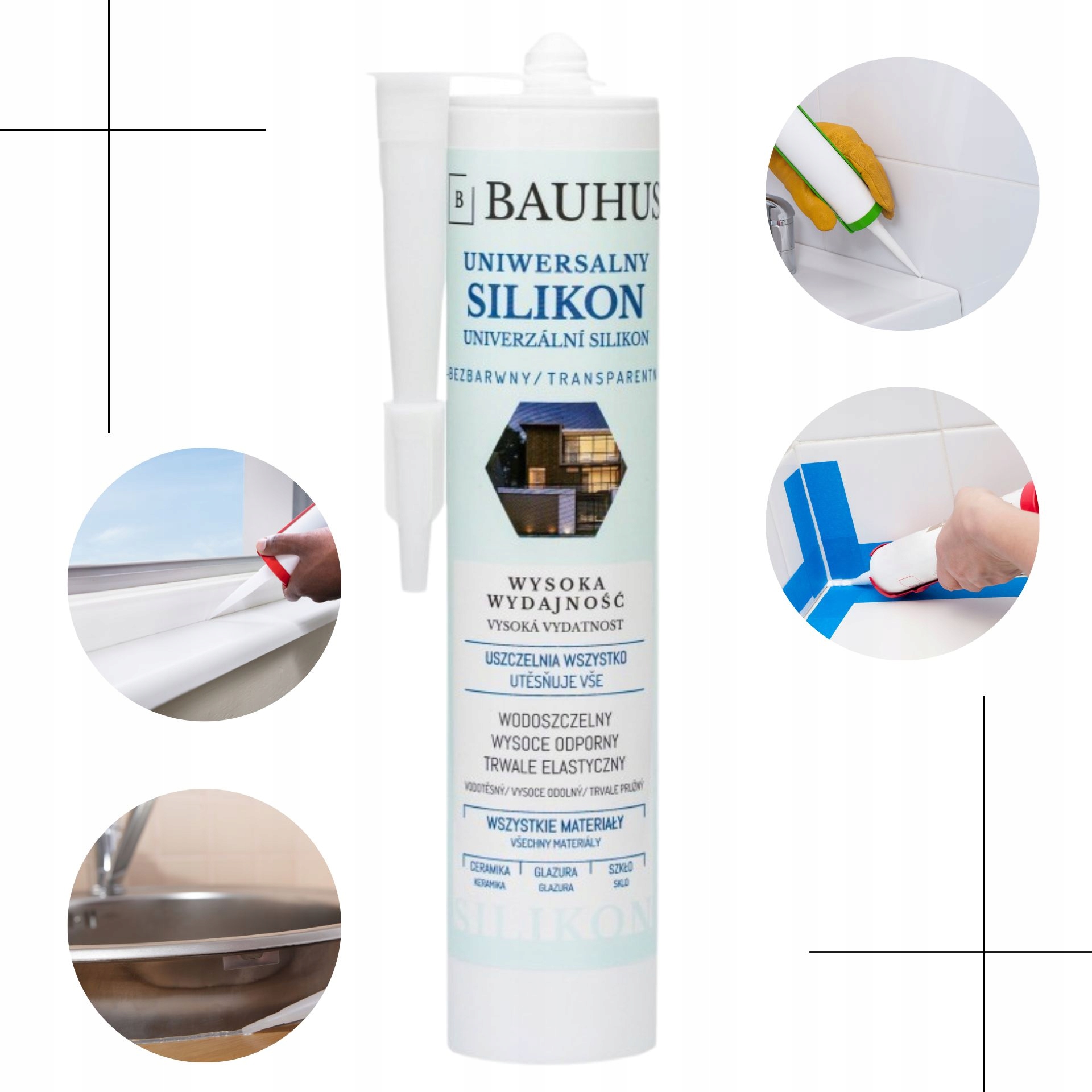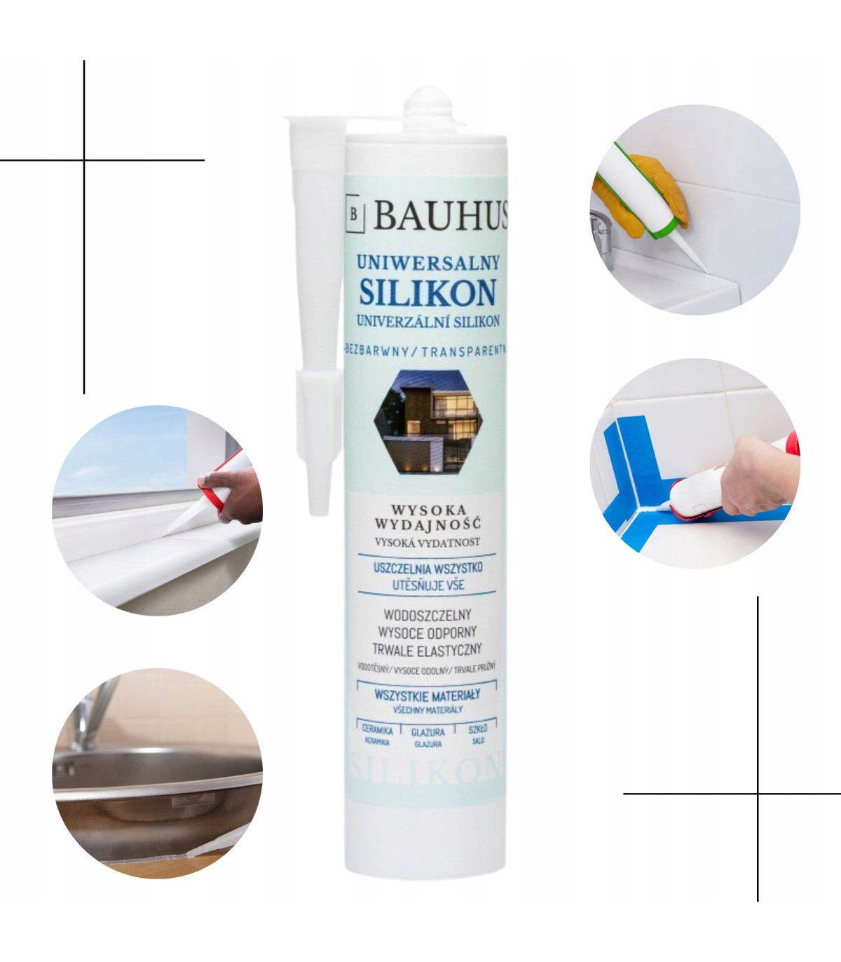 Silikon Uniwersalny BAUHUS to trwały i elastyczny uszczelniacz o doskonałej wodoszczelności i przyczepności do większości materiałów budowlanych. Idealny do spoinowania, fugowania i uszczelniania w domu, warsztacie i podczas remontu!