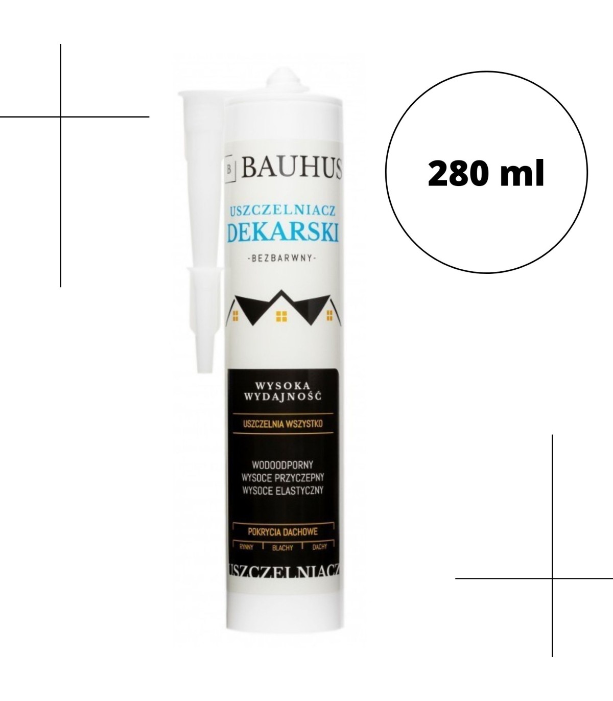 ✅ USZCZELNIACZ DEKARSKI BAUHUS BEZBARWNY 280 ML to profesjonalny, jednoskładnikowy i elastyczny produkt przeznaczony do wszelkich prac dekarskich oraz napraw dachowych. Doskonale sprawdza się przy uszczelnianiu połączeń, rynien, kominów i obróbek dachowych.