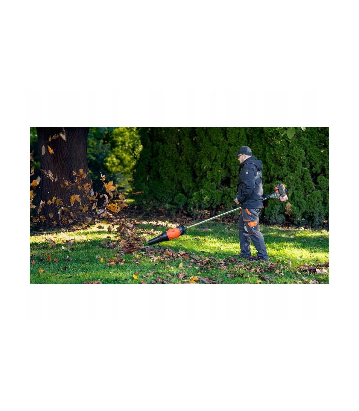Mocna dmuchawa strumieniowa posiada duża moc , aby usuwać zanieczyszczenia na chodnikach, twardych powierzchniach i obszarach trawiastych. Dmuchawa z wentylatorem strumieniowym jest przystosowana do mocowania na kosę o średnicy rury montażowej 28 mm i napędzanej wałkiem 9 frezów. Dmuchawa, oczyszcza ścieżki i podjazdy z liści, skoszonej trawy i śmieci.