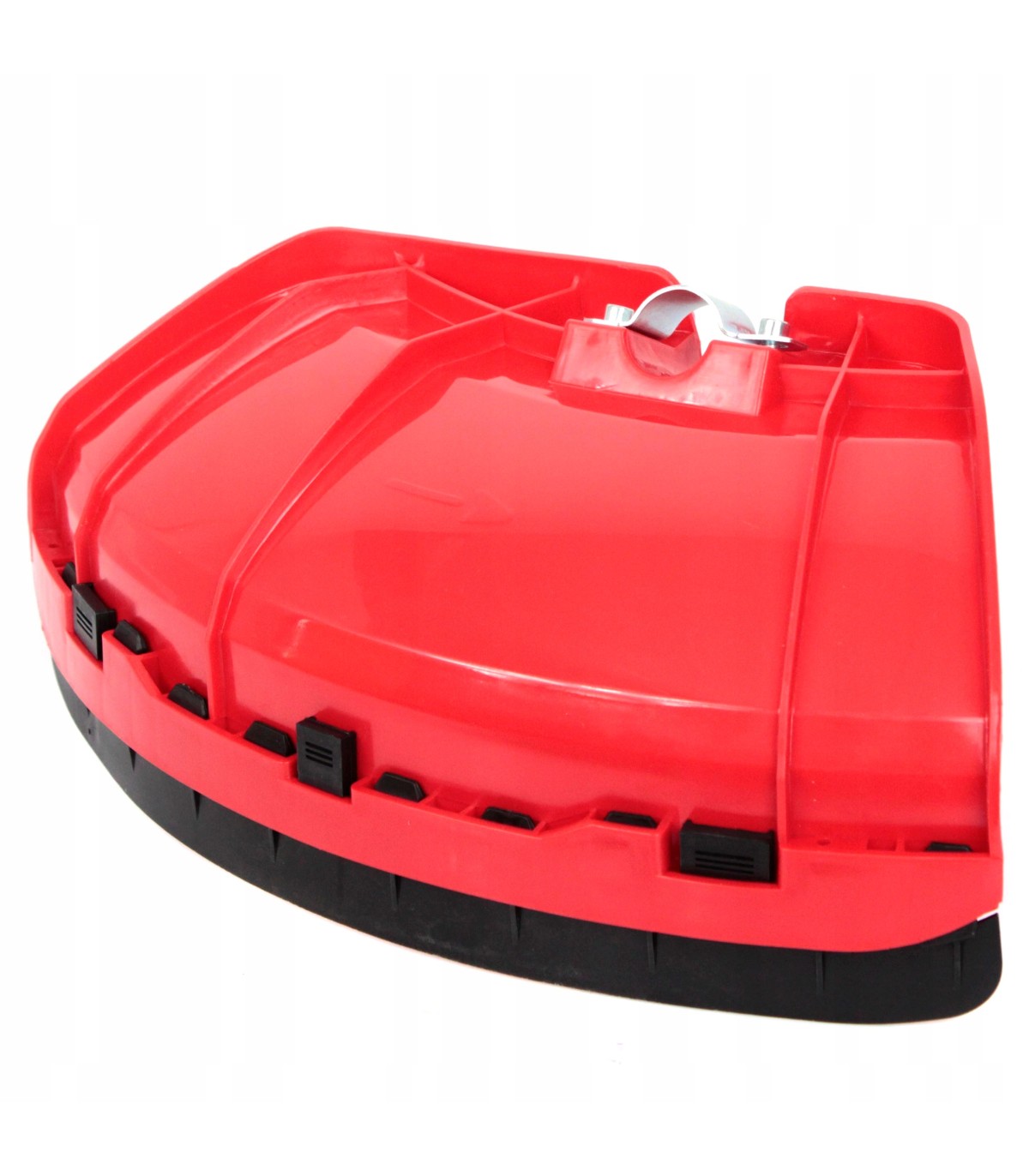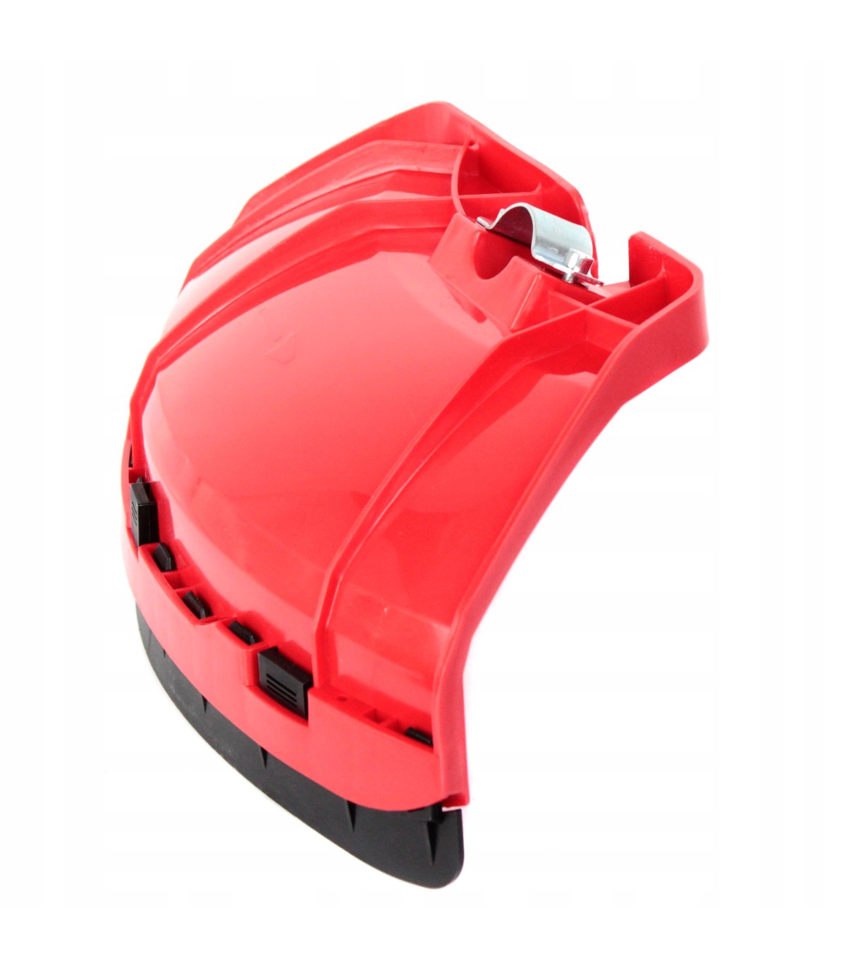 Solidna osłona ochronna do kosy spalinowej / podkaszarki, wyposażona w metalowe mocowanie, zapewniające trwałość i stabilność podczas pracy. Skutecznie chroni użytkownika przed wyrzucanymi kamieniami, trawą i innymi zanieczyszczeniami powstającymi podczas koszenia.