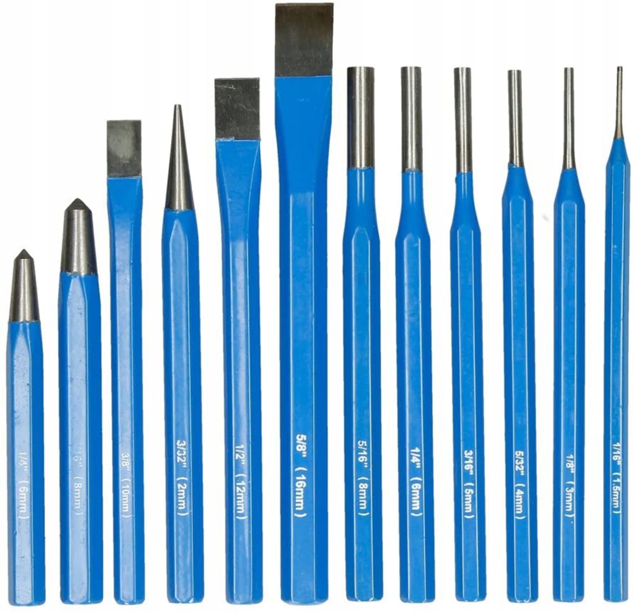 ZESTAW PUNKTAKÓW, PRZECINAKÓW I WYBIJAKÓW 12 ELEMENTÓW STAL CrV HARTOWANE