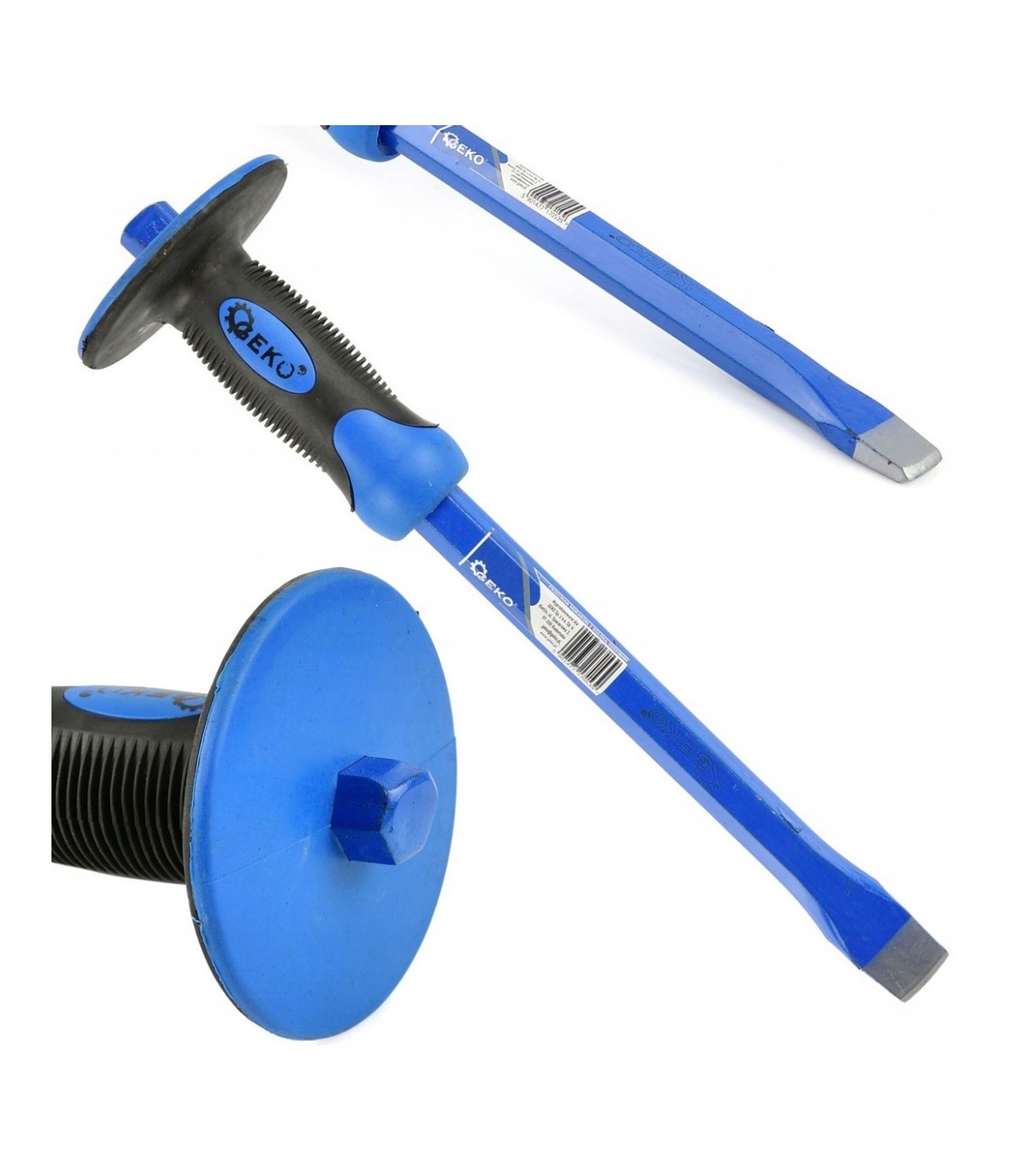 Przecinak murarski z osłoną zabezpieczającą dłoń przed uderzeniem. Wykonany ze stali narzędziowej CrV o przekroju sześciokątnym 19mm oraz szerokości roboczej 22mm.