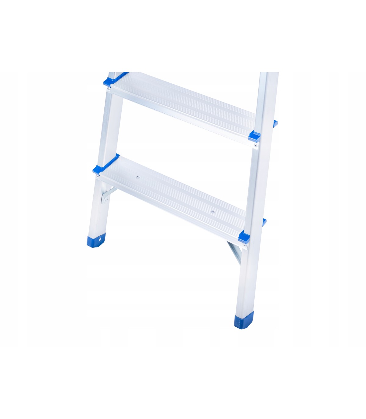 Konstrukcja drabiny została wykonana z wysokogatunkowego aluminium, które gwarantuje odporność na korozję, niską masę oraz dużą trwałość przy intensywnym użytkowaniu.