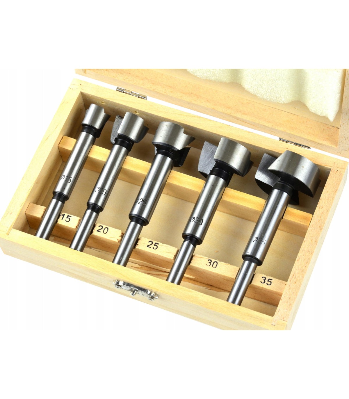⭐ FREZY SĘKOWNIKI DO DREWNA 5 SZTUK. 5-elementowy komplet frezów do drewna 15-35 mm cokowniki. Cokowniki służą do wycinania otworów w drewnie i materiałach drewno-podobnych. Świetnie sprawdzą się w warsztatach stolarskich, meblarskich oraz w przydomowym warsztacie - dla majsterkowicza.