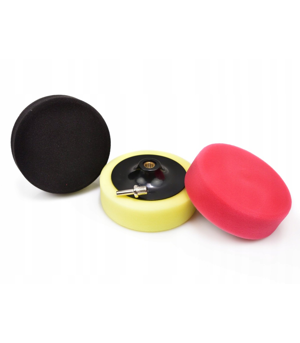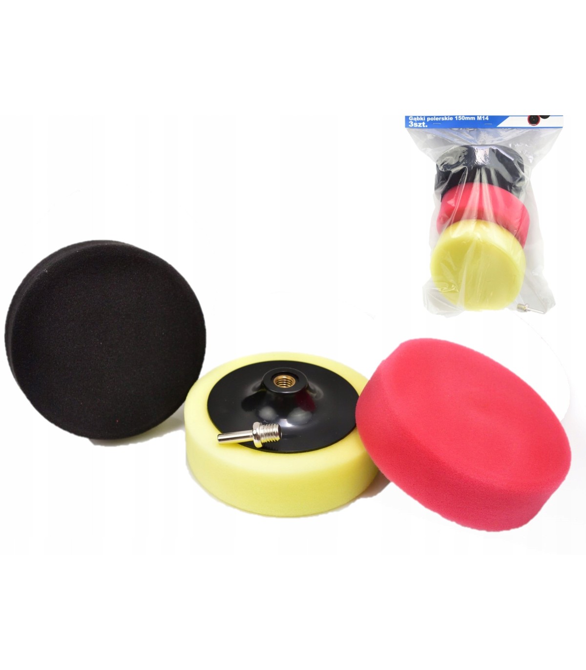 ⭐ Zestaw gąbek polerskich na dysku. Gąbki o średnicy 150mm przytwierdzone do dysków z tworzywa sztucznego, posiadają gwint montażowy M14, po zastosowaniu adapteru znajdującego się w zestawie mogą być używane z wiertarkami.