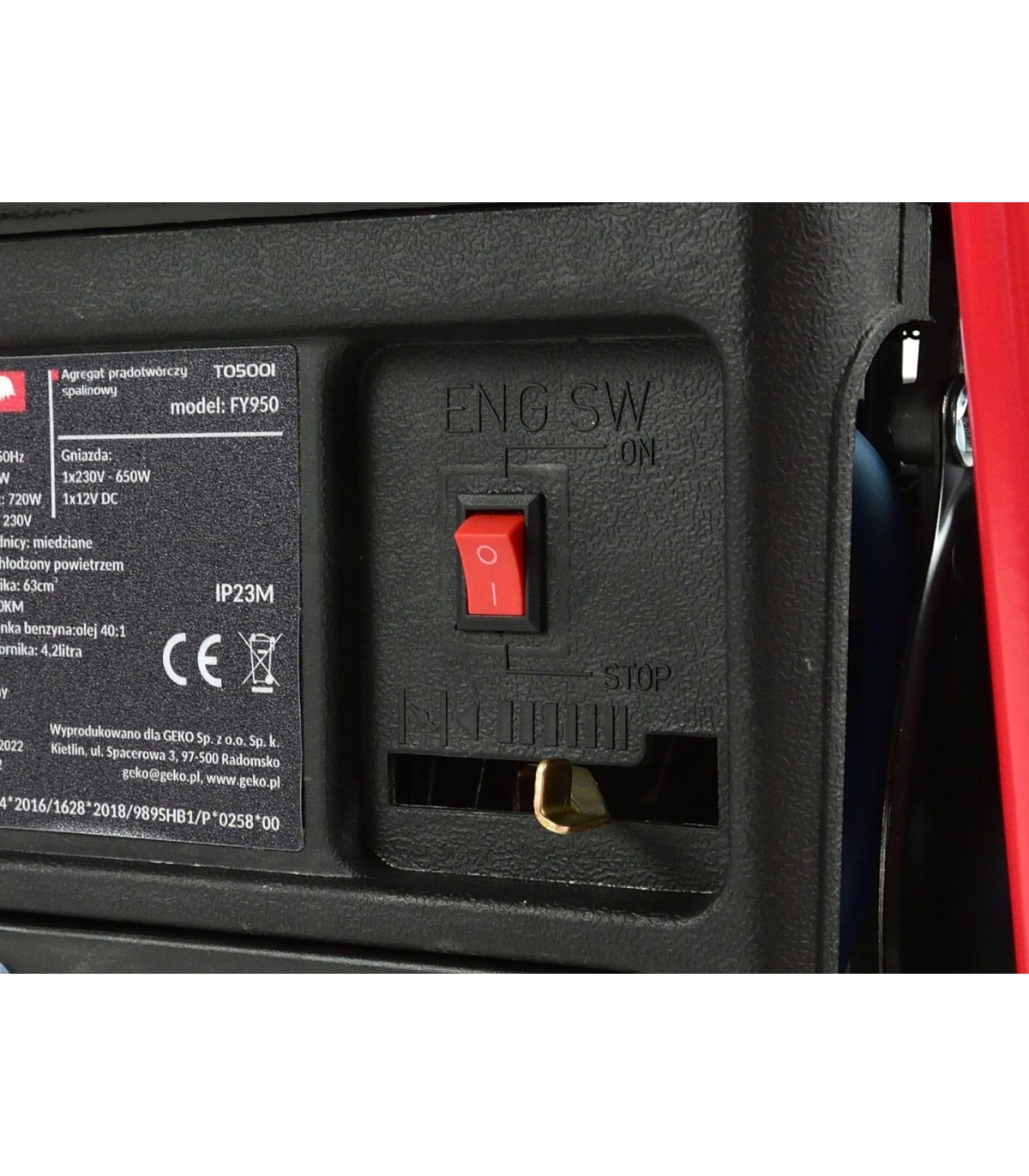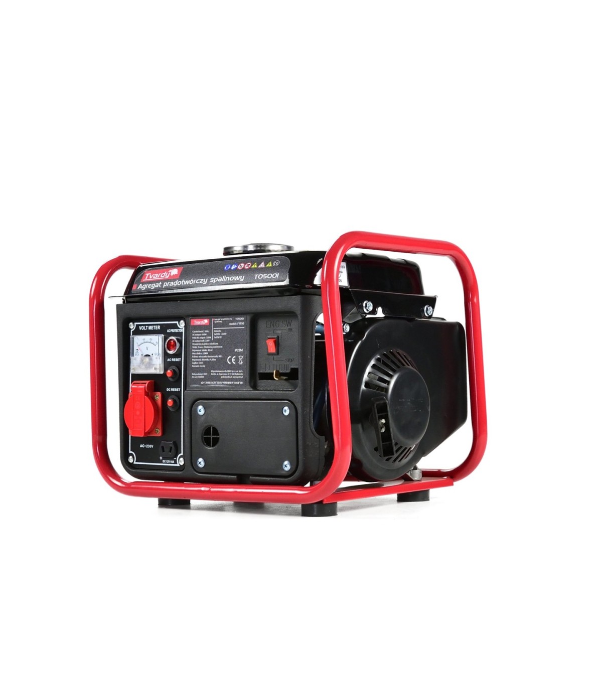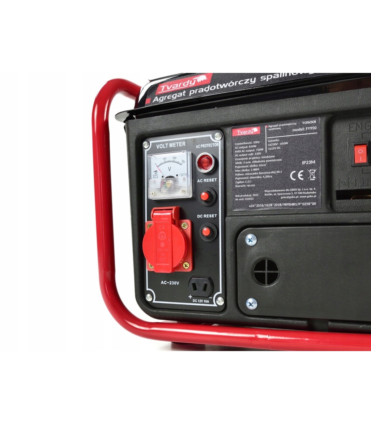 ⭐ Agregat prądotwórczy wyposażony w dwusuwowy silnik spalinowy o pojemności 66cc i mocy 2 KM. Pozwana wygenerować chwilową moc maksymalną na poziomie 720W. Moc stała jaką może być obciążany agregat wynosi 650W. Zbiornik paliwa o pojemności 4,2l pozwala na nieprzerwaną prace (przy średnim obciążeniu) przez ok. 6h.