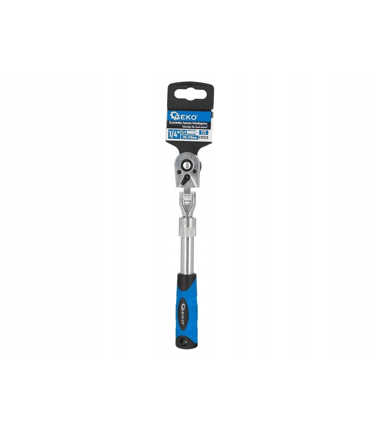 Grzechotka teleskopowa marki GEKO z łamaną głowicą 1/4" to narzędzie stworzone z myślą o wymagających majsterkowiczach oraz profesjonalistach. Dzięki swojej funkcjonalności i solidnemu wykonaniu doskonale sprawdzi się zarówno w warsztacie, jak i podczas prac serwisowych w domu czy garażu.