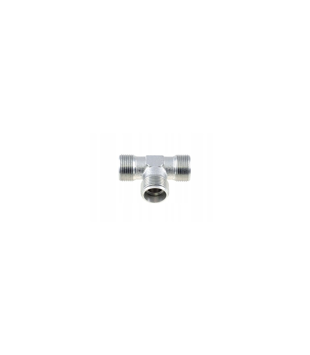 Złączka trójnikowa z gwintami zewnętrznymi metrycznymi z gniazdem 24°. Stosowane w hydraulice do połączeń w układach olejowych. Wykonana ze stali automatowej, pokryta warstwą antykorozyjną O-cynk w pasywacji białej. Występuje w wersji lekkiej (L – do 16 MPa) oraz ciężkiej (S – do 32 MPa) Złączka wykonana z odkuwki ( jeden element )