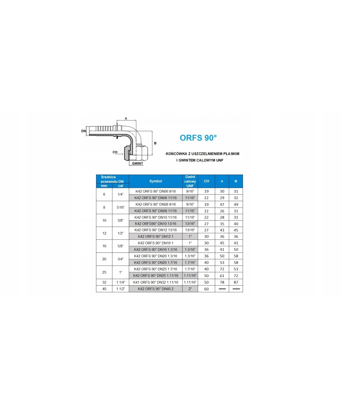 Końcówka K42 ORFS 90° DN06 11/16” CATERPILLAR