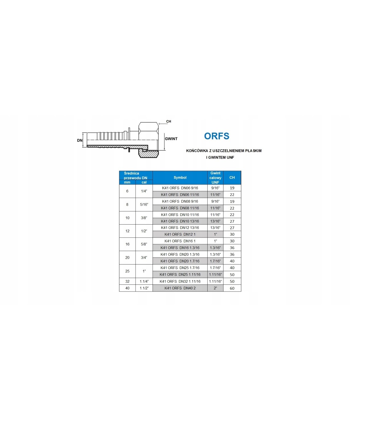 - Końcówka prosta ORFS (K41) z gwintem wewnętrznym UNF.