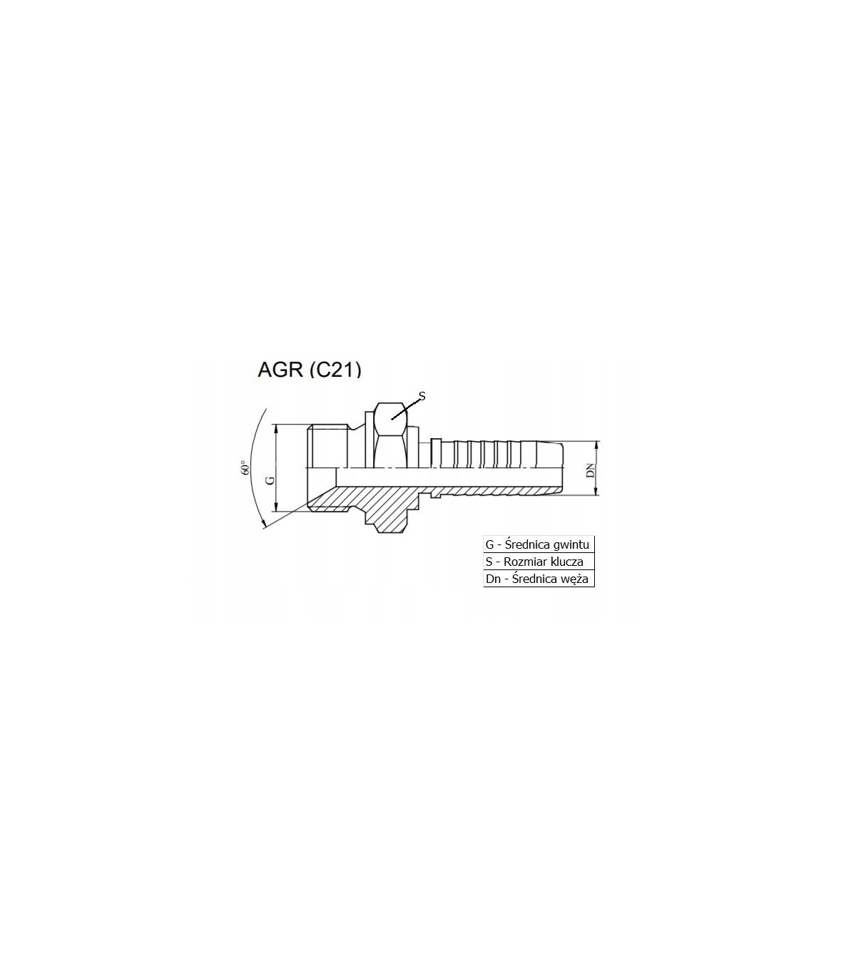 Końcówka hydrauliczna prosta z gwintem zewnętrznym BSP , Stożek uszczelniający 60° (AGR – C21). Końcówka przeznaczona do zakucia przewodów hydraulicznych. Końcówka AGR jest kompatybilna z końcówkami DKR(nakrętka).