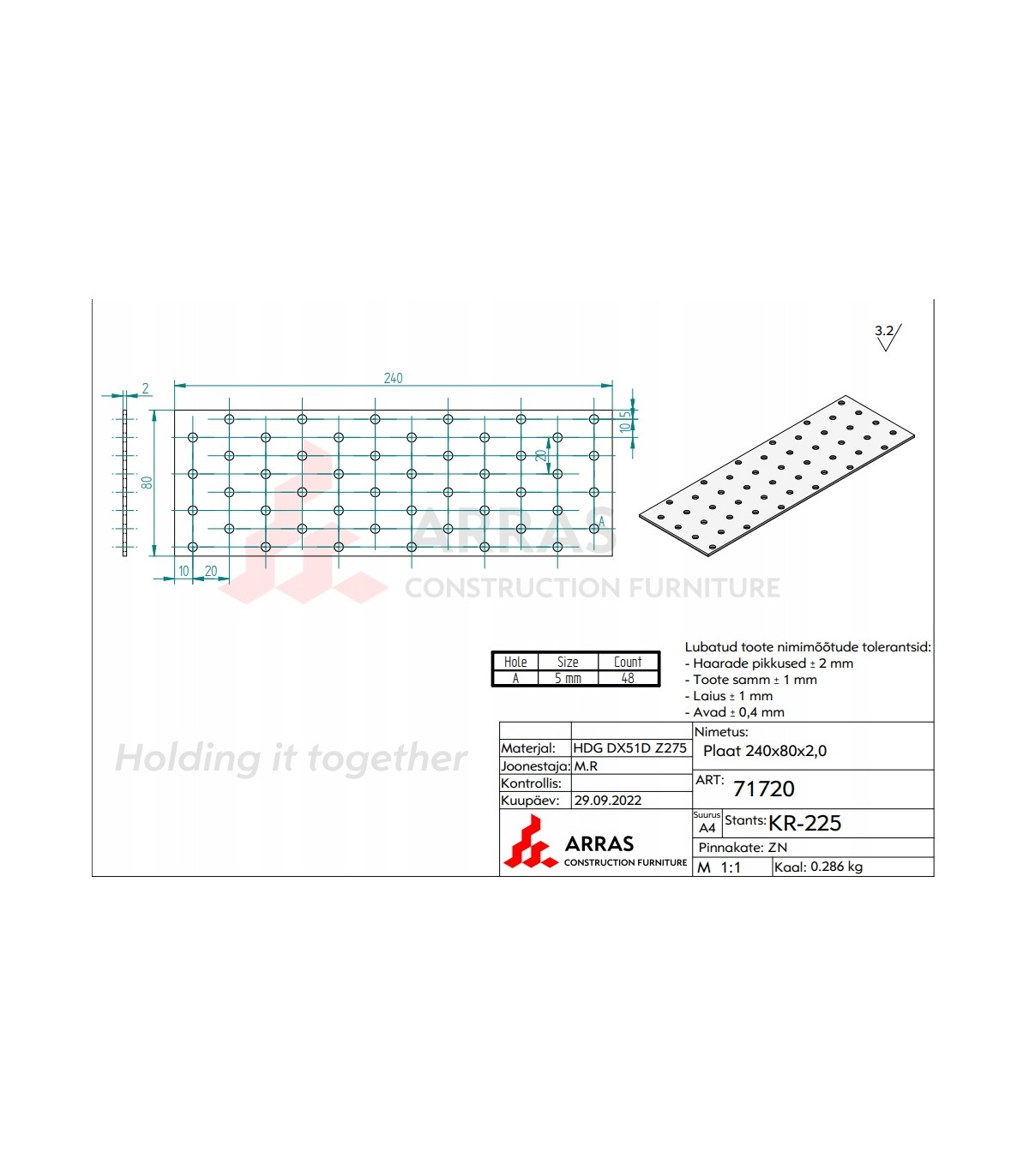 PP10 Płytka perforowana 80x240x2mm