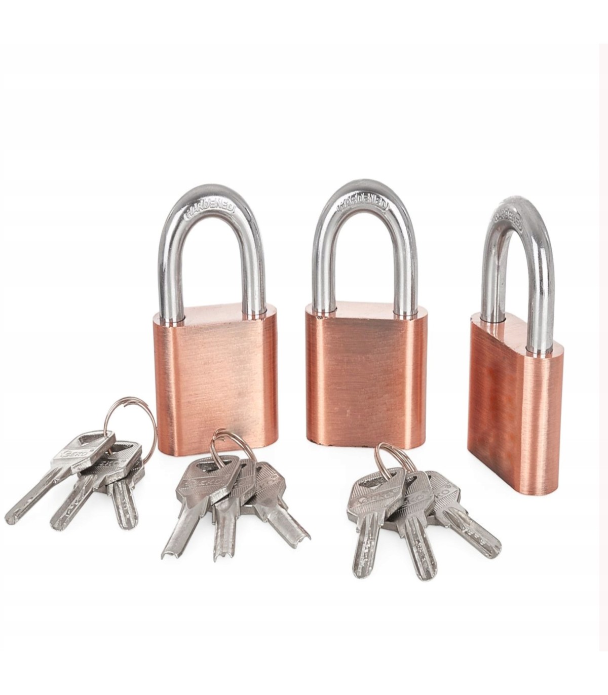 ⭐Zestaw trzech solidnych kłódek niklowanych to praktyczne i niezawodne rozwiązanie do zabezpieczenia różnorodnych obiektów. Dzięki systemowi jednego klucza, wszystkie trzy kłódki można otworzyć tym samym kompletem kluczy, co znacznie zwiększa wygodę i funkcjonalność użytkowania.