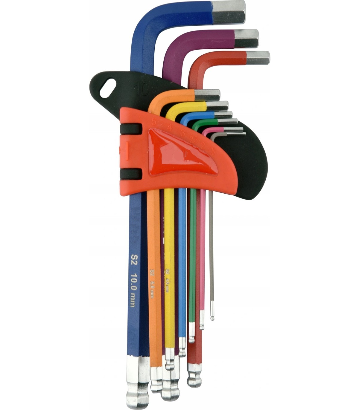 ⭐ Wysokiej jakości zestaw kluczy imbusowych, idealny do wszelkich prac mechanicznych i montażowych. Zestaw zawiera 9 kluczy w różnych rozmiarach, oznaczonych kolorami dla łatwiejszej identyfikacji.