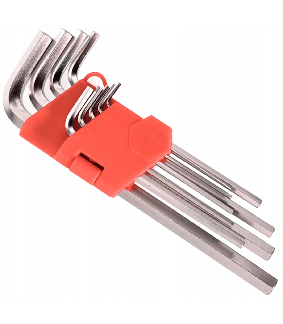 Zestaw kluczy imbusowych to podstawowe i niezbędne narzędzie dla każdego majsterkowicza, mechanika, czy pasjonata domowych napraw. Ten zestaw zawiera 9 kluczy o różnych rozmiarach, umożliwiających precyzyjne dokręcanie i odkręcanie śrub z wewnętrznym nacięciem w kształcie sześciokątnym. Dzięki kompleksowemu zakresowi rozmiarów, zestaw ten jest wszechstronny i przydatny do różnorodnych zastosowań w warsztacie i domu.