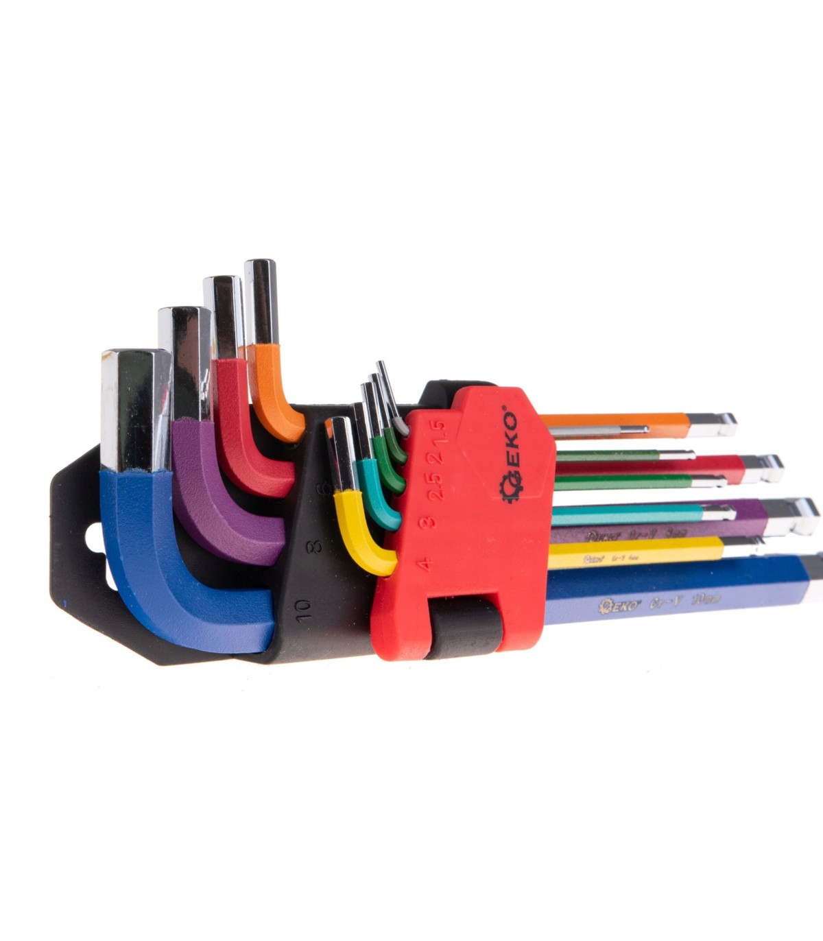 Wysokiej jakości zestaw kluczy imbusowych marki Geko to niezbędnik w każdym warsztacie, zapewniający wszechstronność i precyzję pracy.