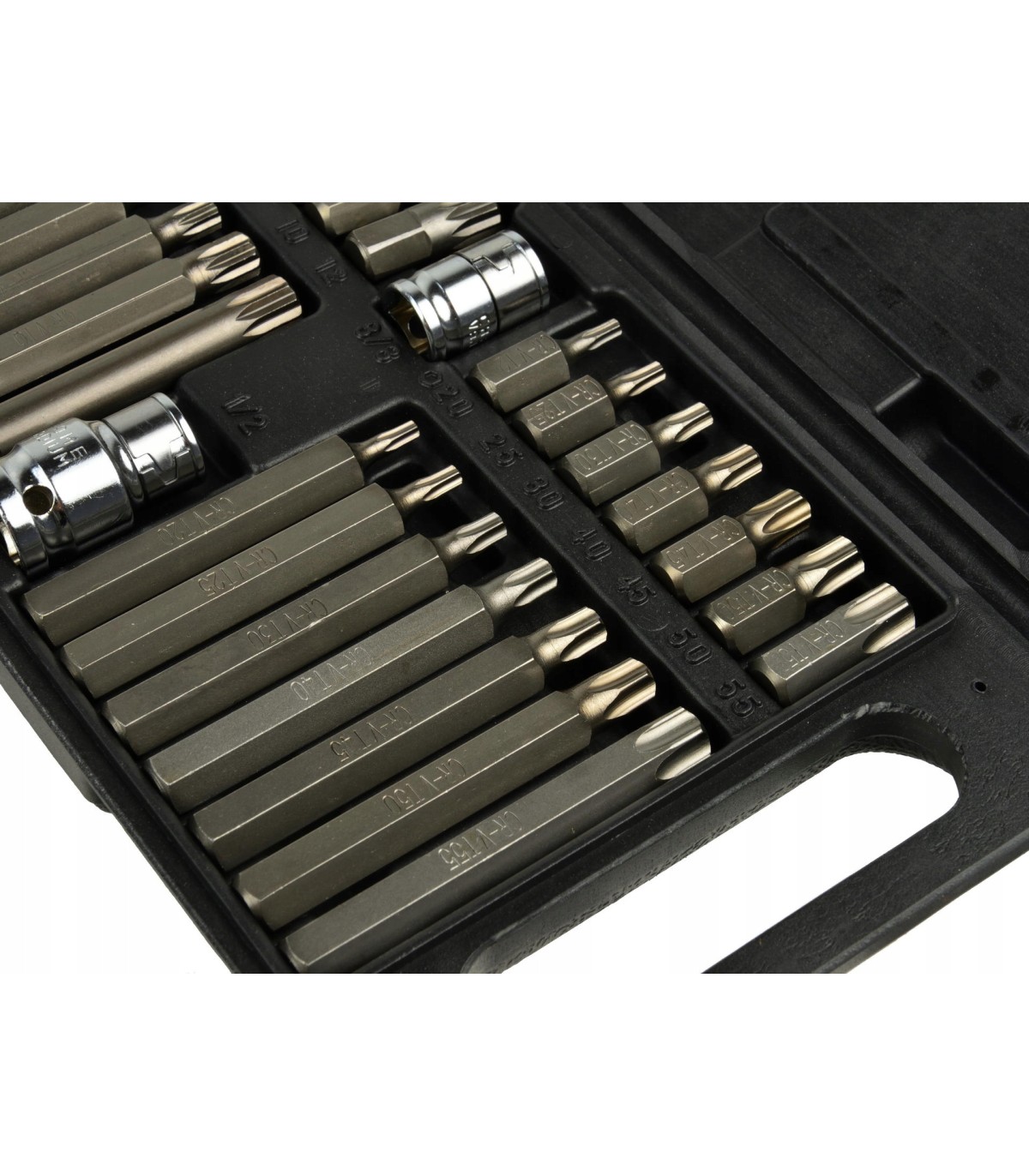 ✅ Zestaw służący do odkręcania śrub specjalnych typu: torx, spline, hex. Dzięki dużej różnorodności bitów zestaw ten doskonale sprawdzi się w profesjonalnych serwisach i warsztatach samochodowych.
