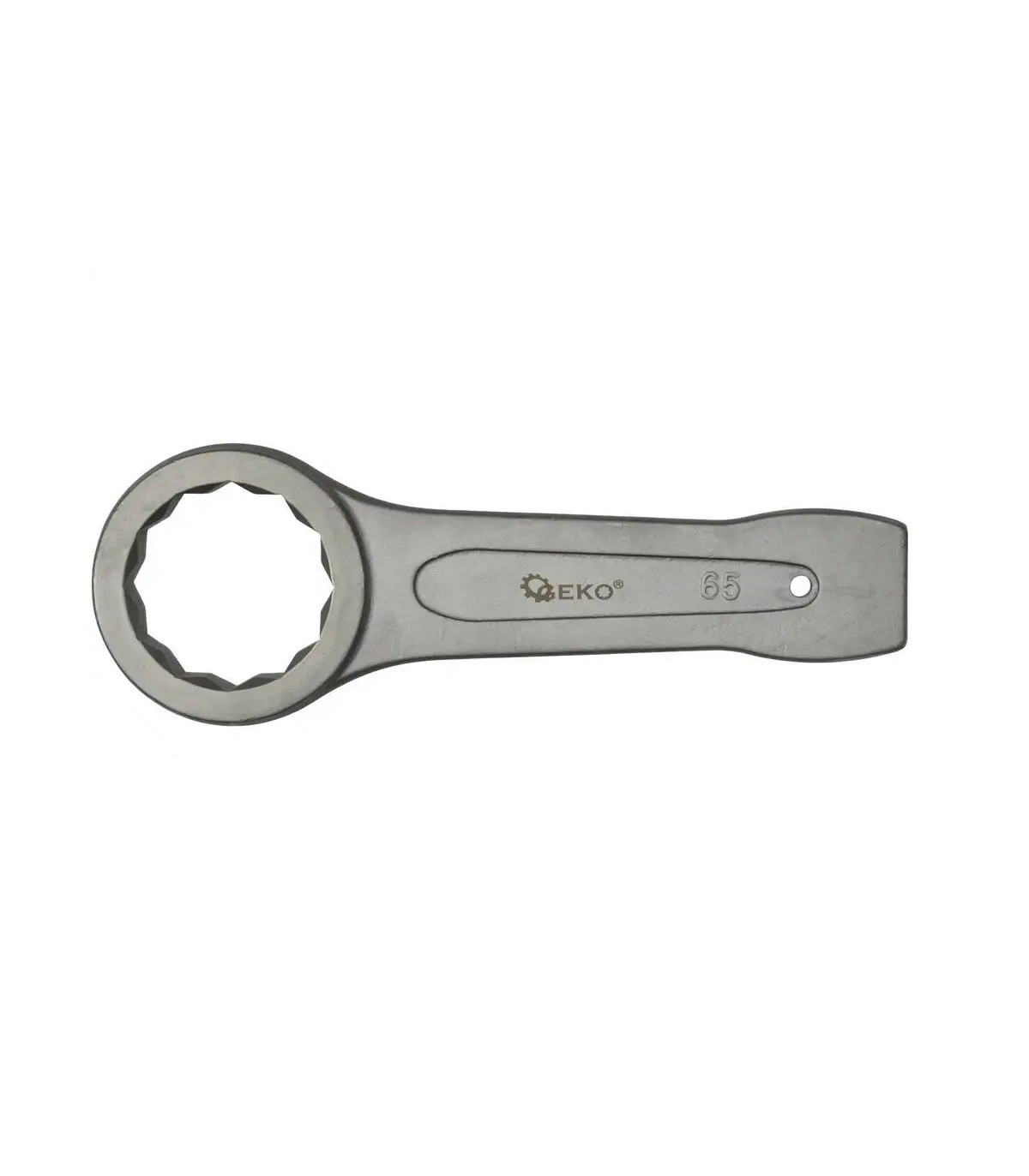 Wysokiej jakości klucz oczkowy do pobijania renomowanej marki GEKO. Przeznaczony do odkręcania mocno dokręconych, bądź zapieczonych śrub poprzez uderzania młotkiem w koniec rękojeści klucza.