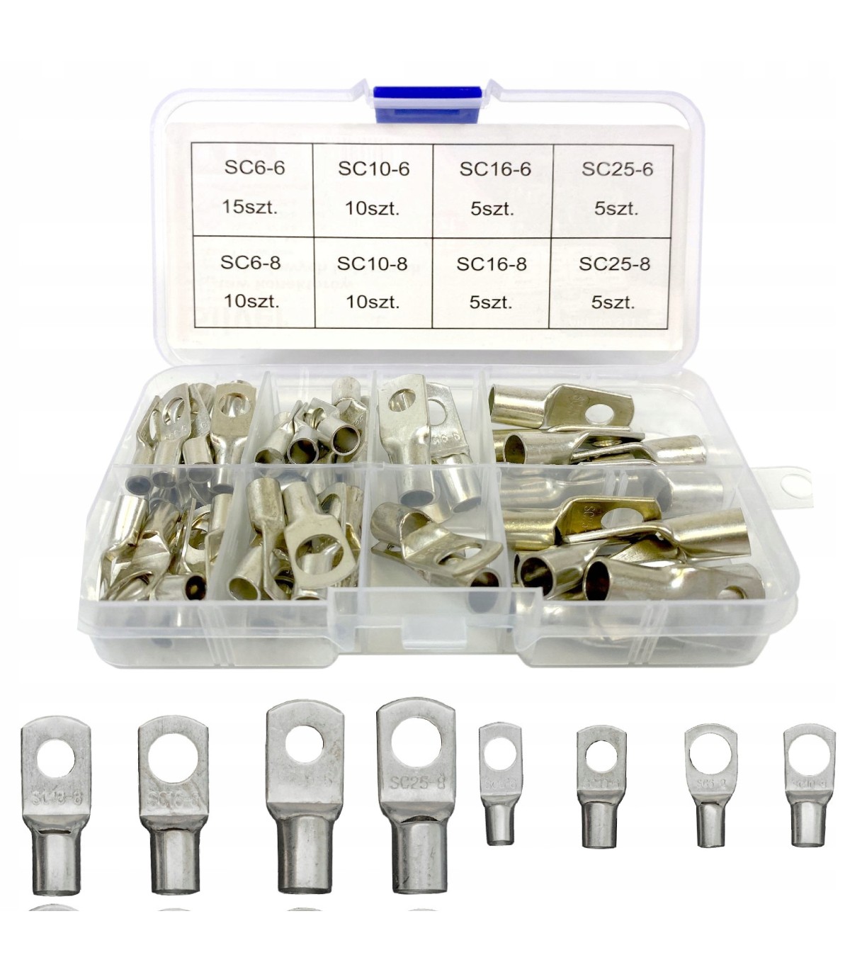 Zestaw konektorów rurowych oczkowych to praktyczne i niezawodne rozwiązanie dla każdego elektryka, mechanika czy majsterkowicza. Końcówki idealnie nadają się do łączenia przewodów w instalacjach elektrycznych – zarówno w warsztacie, jak i w domowych projektach.