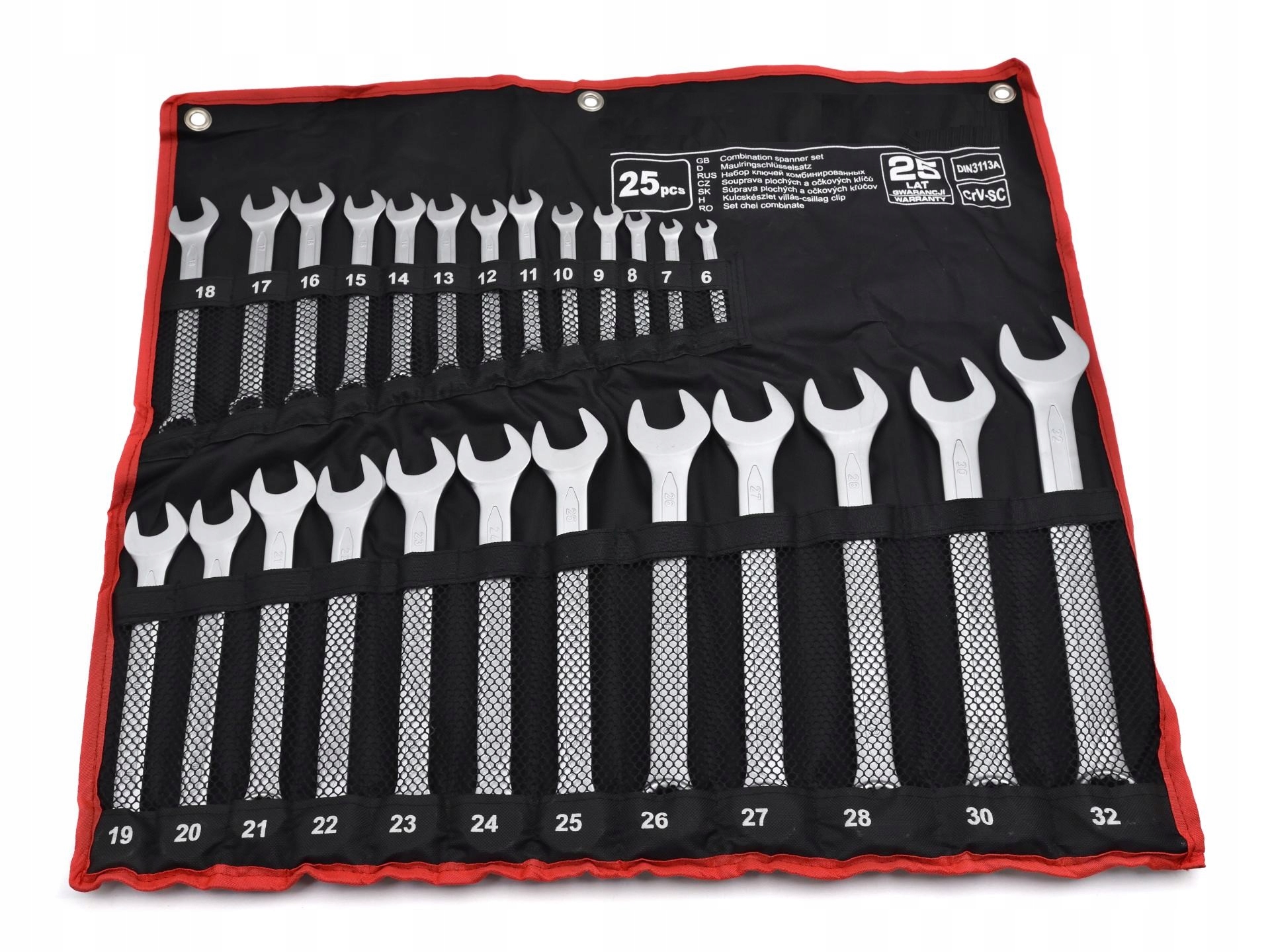 ⭐ W skład zestawu wchodzi 25 kluczy w rozmiarach 6-32mm oraz wytrzymała płachta posiadająca wzmocnione oczka umożliwiające zawieszenie jej na ścianie.
