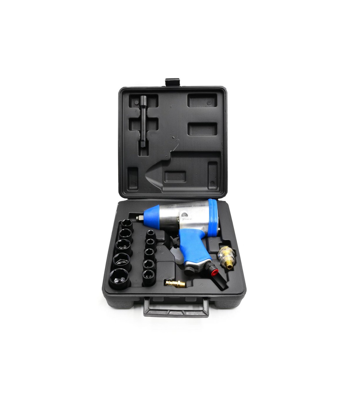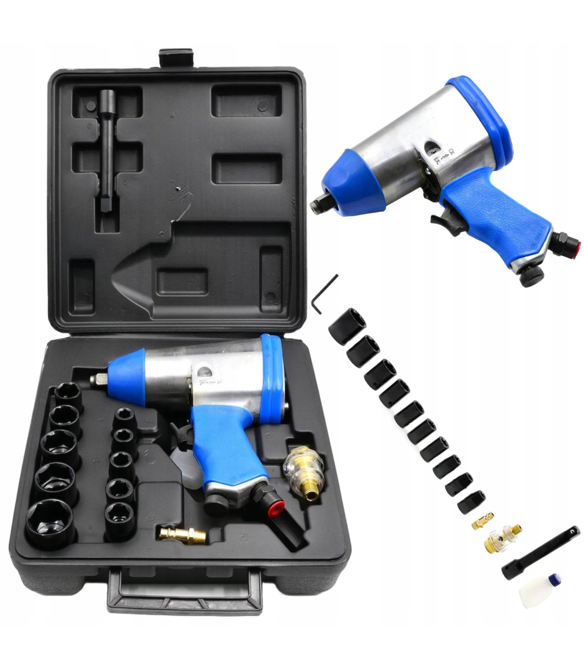 Kompletny zestaw pneumatyczny, idealny do użytku warsztatowego i domowego. Klucz udarowy 1/2" o maksymalnym momencie 850 Nm świetnie sprawdzi się przy odkręcaniu i dokręcaniu śrub, a praktyczna walizka z pełnym wyposażeniem ułatwia przechowywanie i transport.