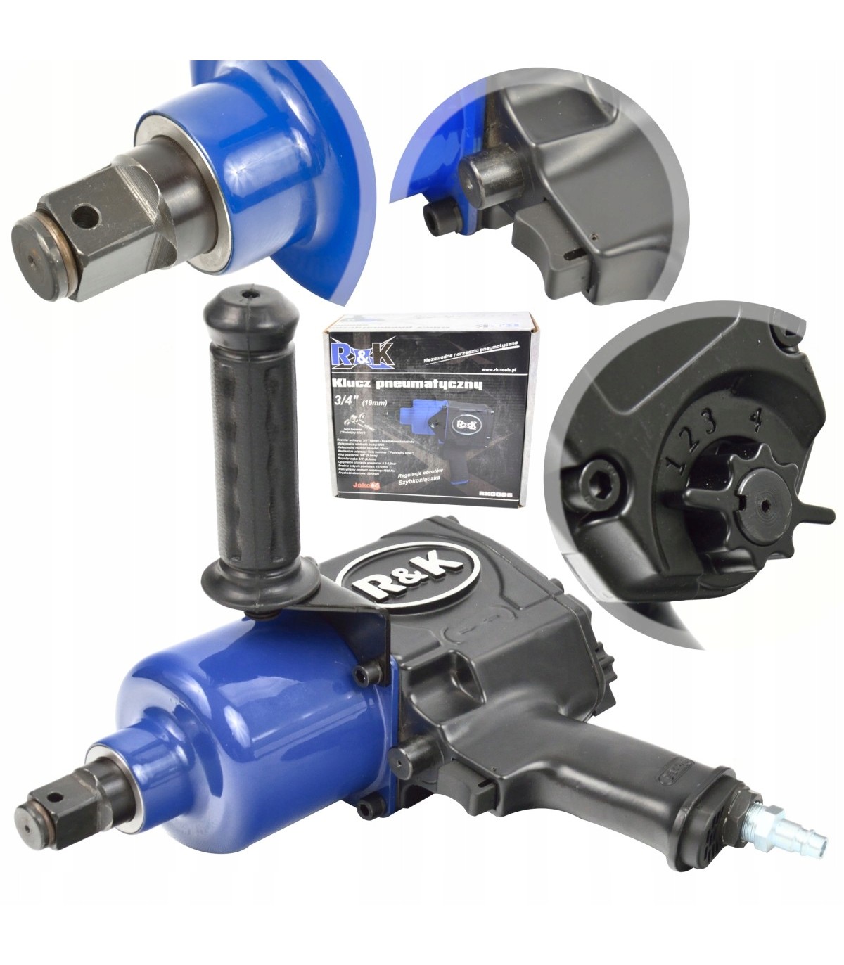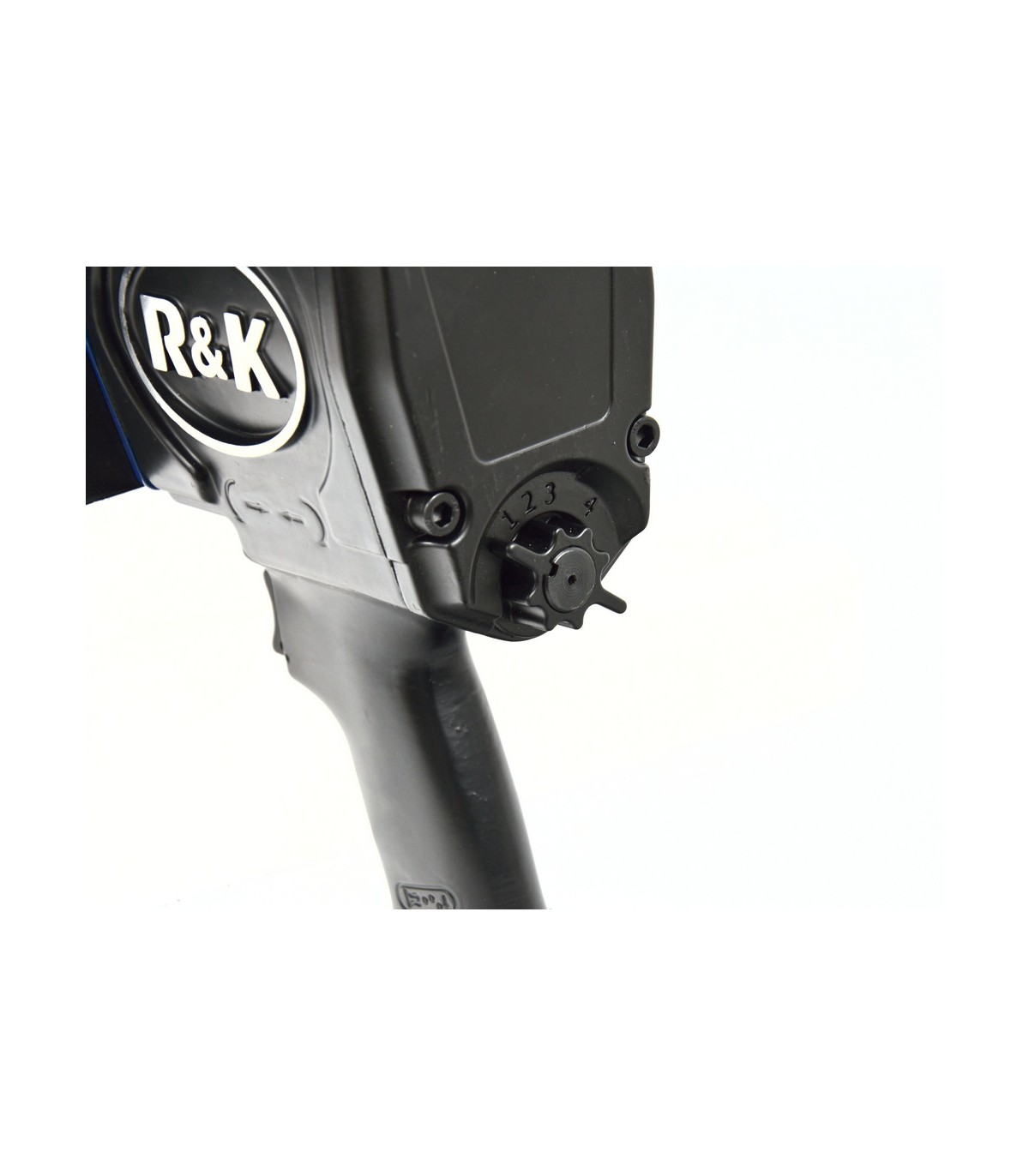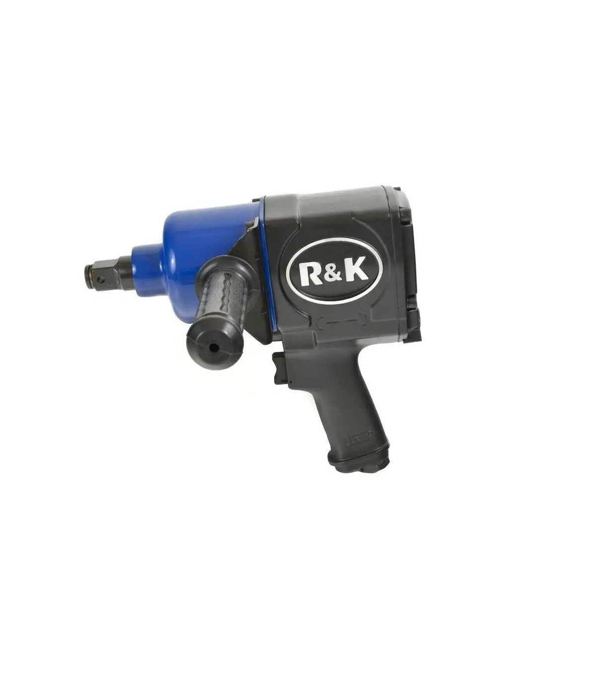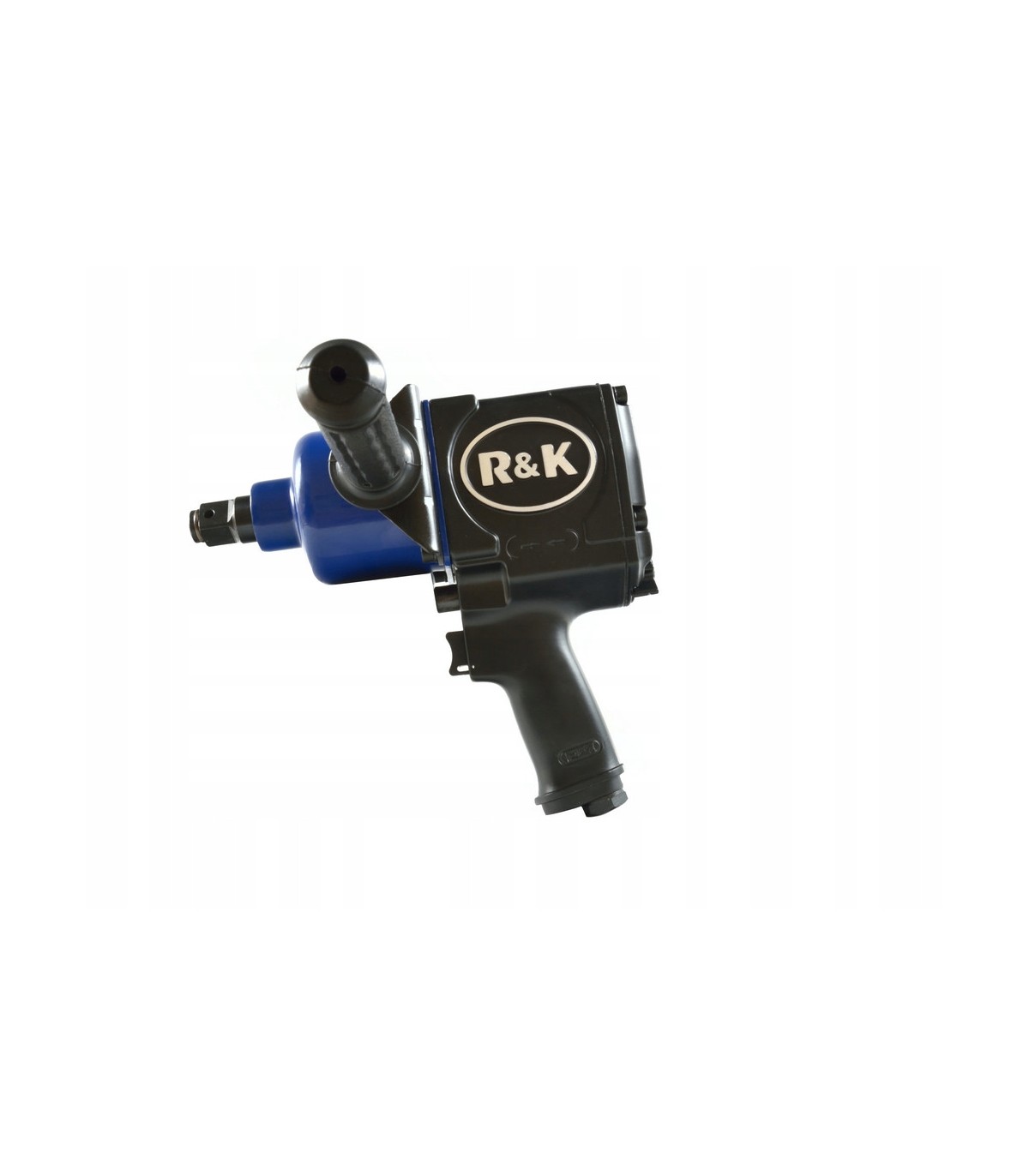 Profesjonalny klucz pneumatyczny marki R&K o wysokiej mocy z podwójnym mechanizmem udarowym Twin Hammer przeznaczony do przykręcania i odkręcania wszelkich połączeń gwintowanych dzięki możliwości zmiany nasadek oraz odkręcania i przykręcania śrub, nakrętek iinnych elementów montażowych.