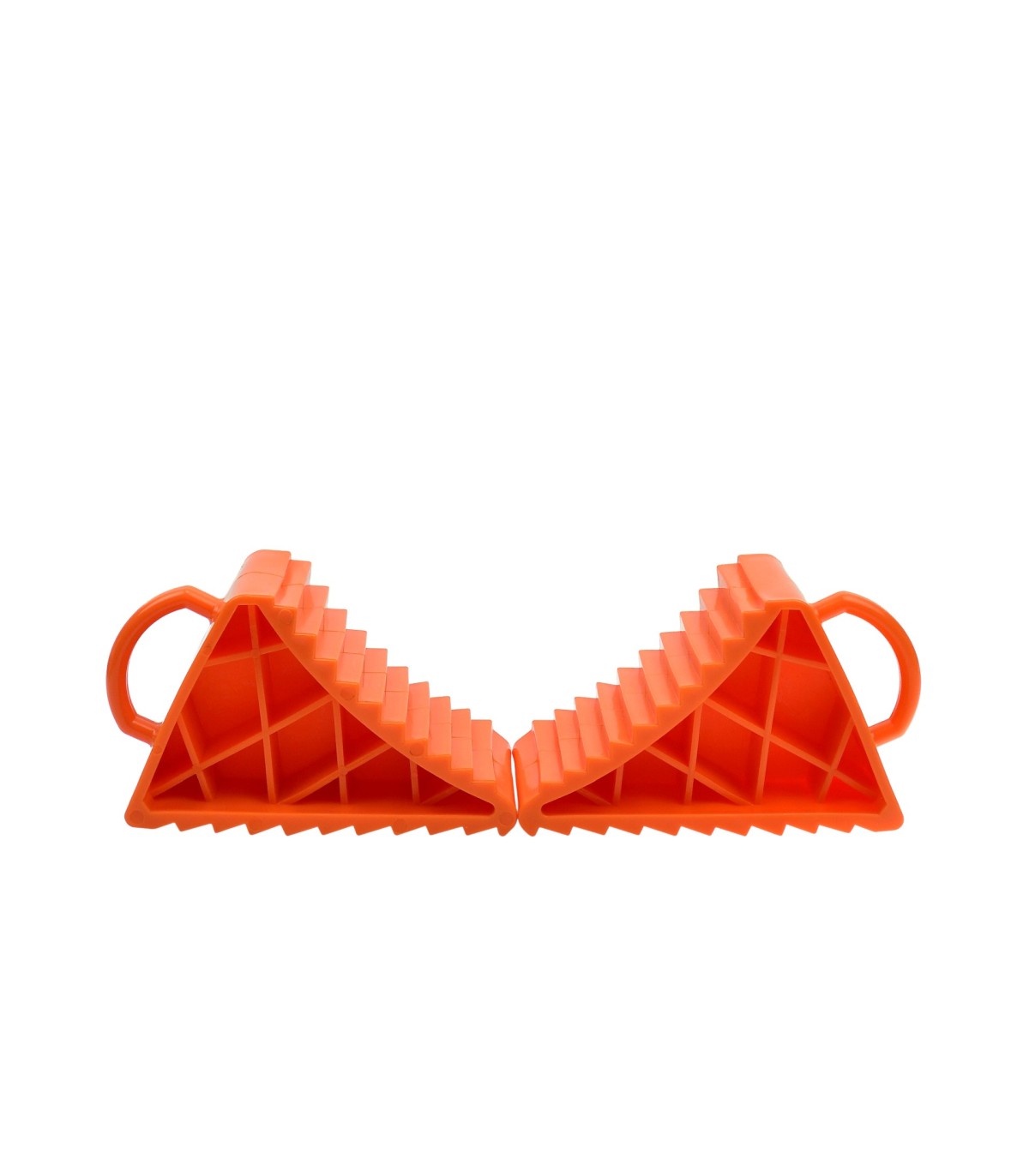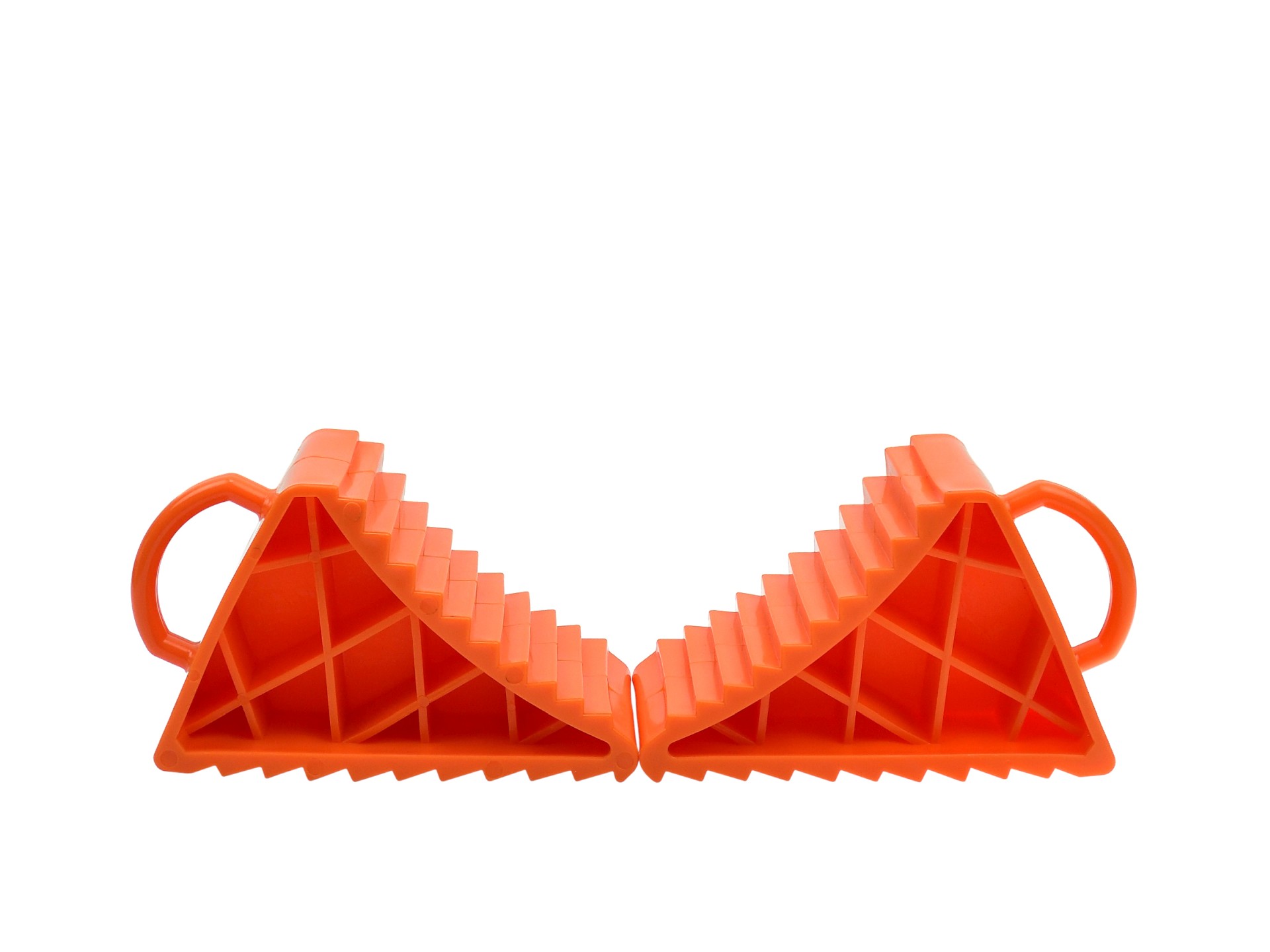 Zestaw wytrzymałych klinów po koła. Wykonane zostały z wysokiej jakości tworzywa sztucznego. Przeznaczone są do zabezpieczania różnego rodzaju pojazdów przed przypadkowym przemieszczeniem się. Antypoślizgowa żebrowana powierzchnia zapobiega przesuwaniu się klinów na podłożu o słabej przyczepności. Charakterystyka produktu: antypoślizgowa żebrowana konstrukcja doskonałe zabezpieczenie przed przypadkowym przemieszczeniem się samochodu, przyczepy, kampera oraz innych pojazdów wykonane z wysokiej jakości tworzywa sztucznego odporne na różne warunki pogodowe posiadają uchwyt do wygodnego przenoszenia oraz wyciągania klinów spod kół