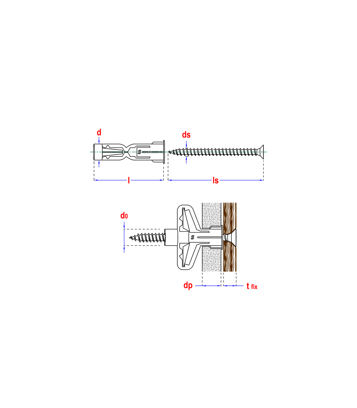 🔹 Rodzaj: kołek rozporowy do pustaków z wkrętem