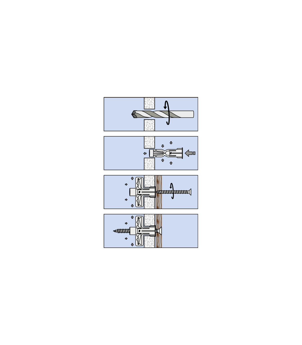 ✔️ Pewne mocowanie w pustakach i materiałach dziurawych – dzięki specjalnej konstrukcji rozporowej.