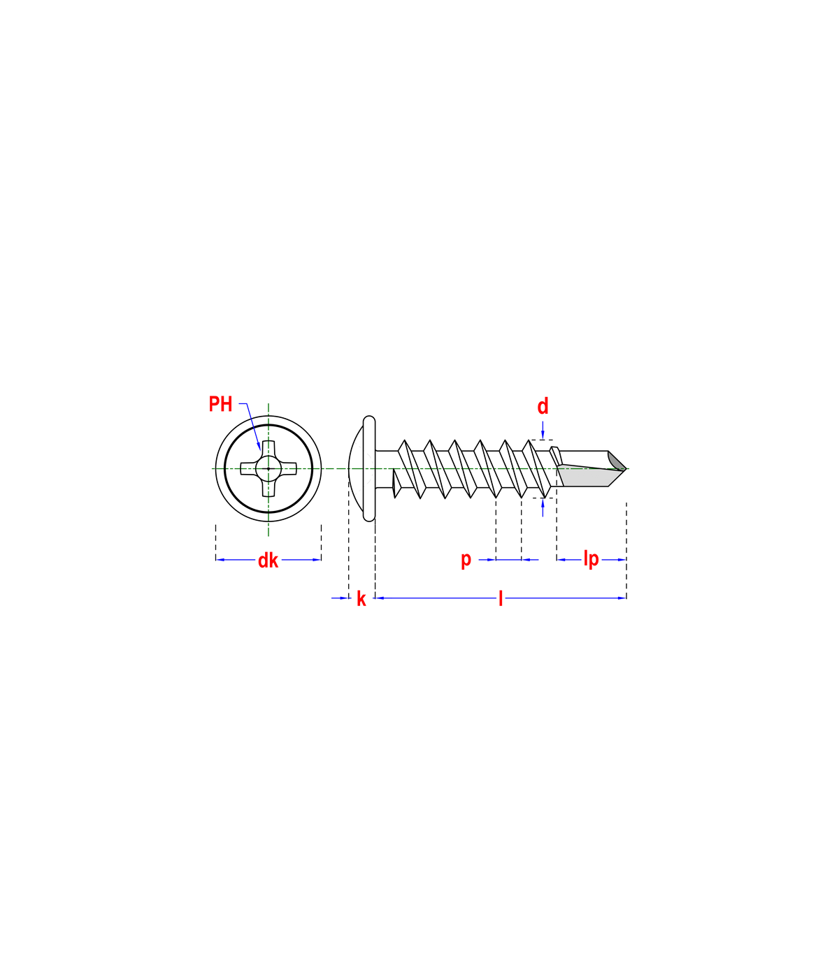 Duży łeb wkręta równomiernie rozkłada nacisk, chroniąc powierzchnię materiału. Idealny do montażu profili stalowych na stalowych podkonstrukcjach oraz lekkich elementów metalowych i aluminiowych.